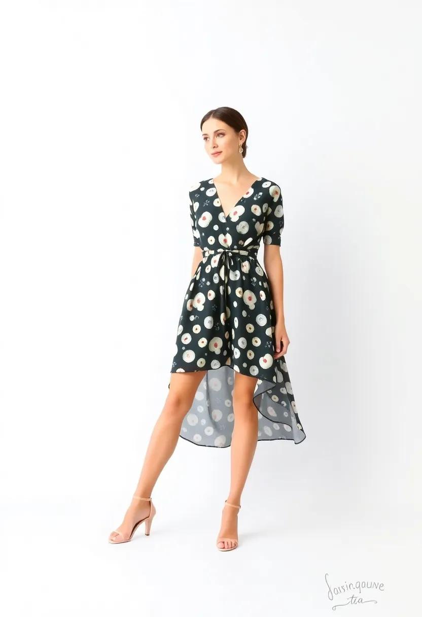 | Dinner Date | Mid-length wrap dress with pointed-toe heels |