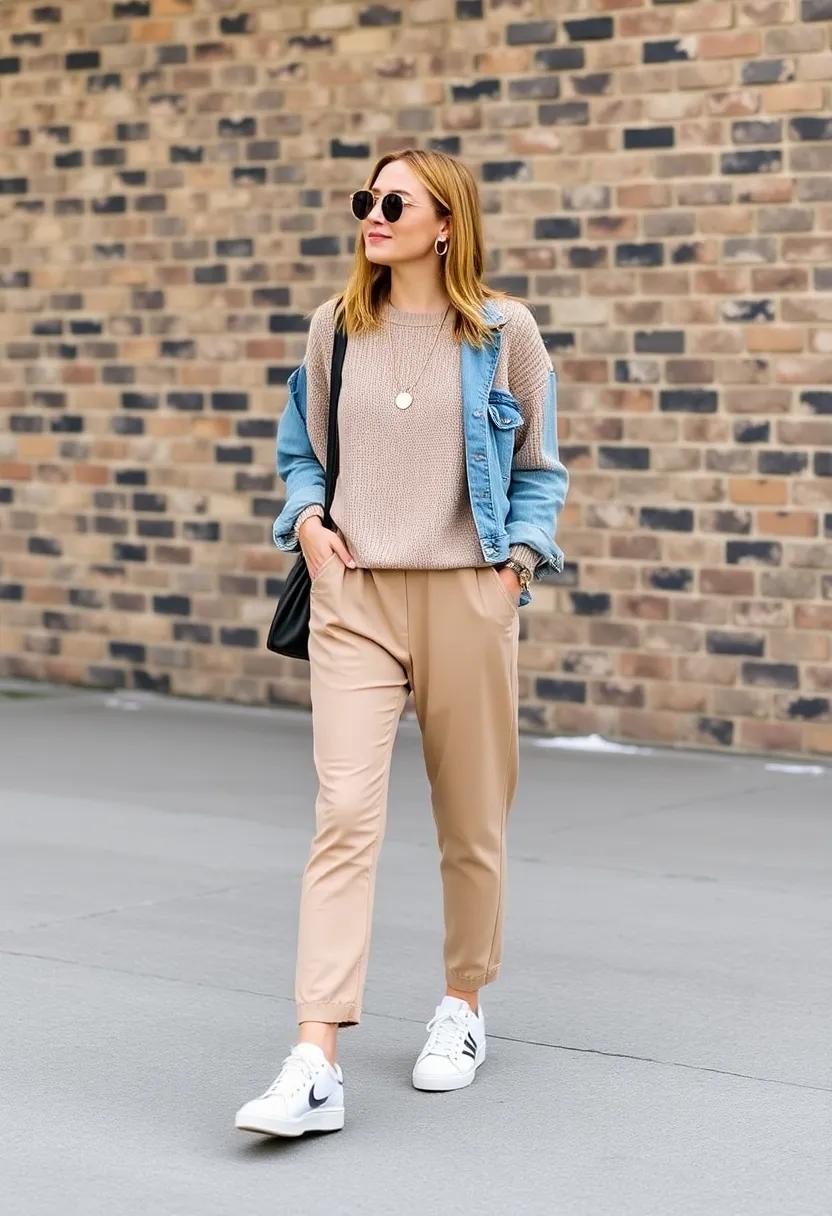 Weekends are the perfect possibility to embrace a laid-back style while still looking effortlessly chic. Imagine stepping out in a soft, oversized sweater paired with tailored joggers that enhance your silhouette while offering maximum comfort. To elevate this look, consider adding a pair of trendy ankle boots or sleek white sneakers. Accessories can play a pivotal role here; a chunky pendant necklace or hoop earrings can add just the right amount of flair without feeling overdone.