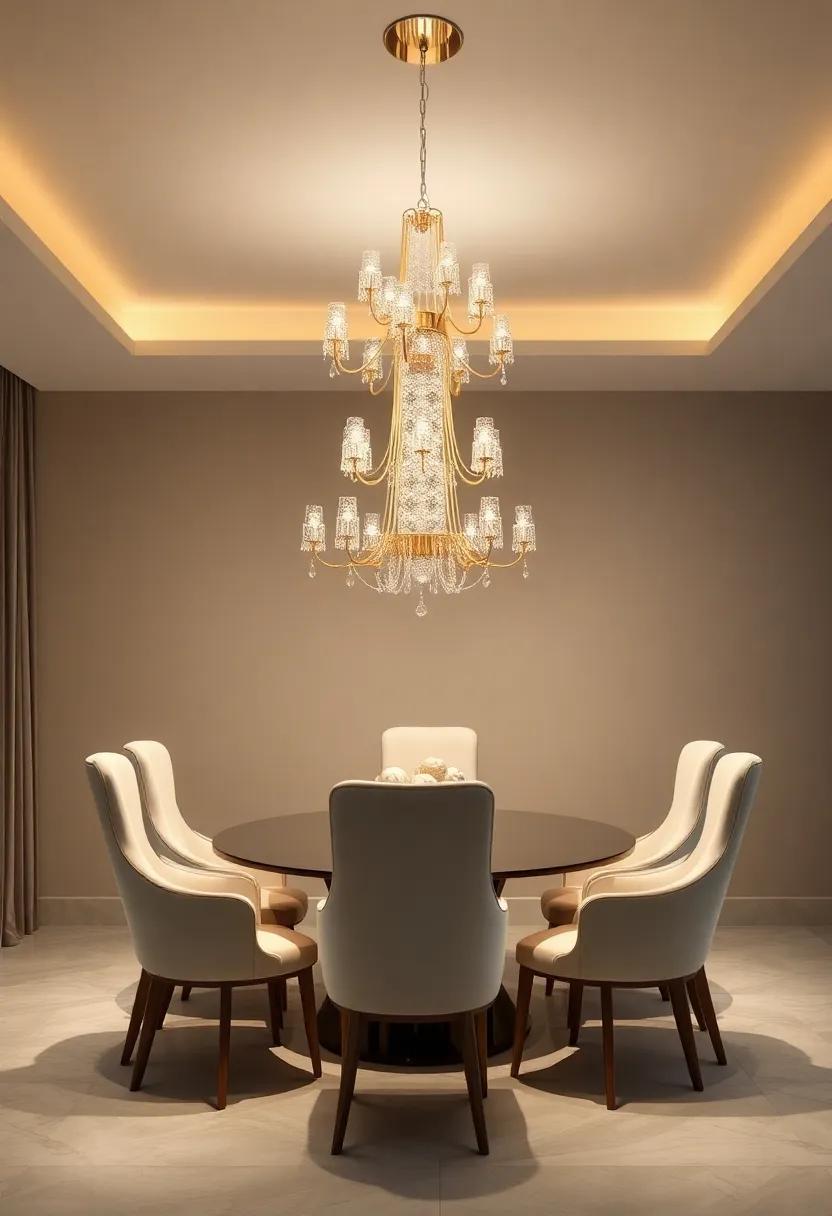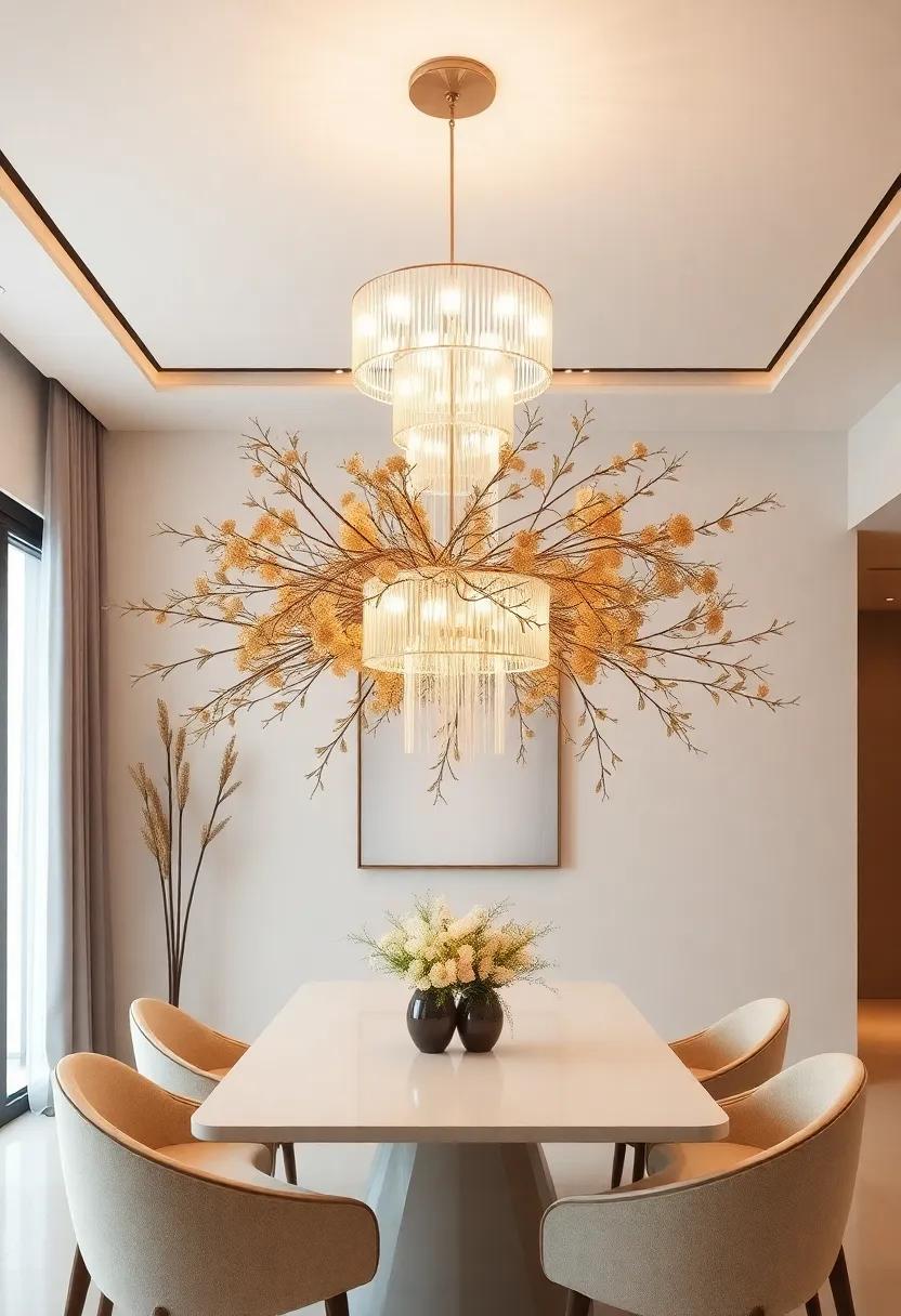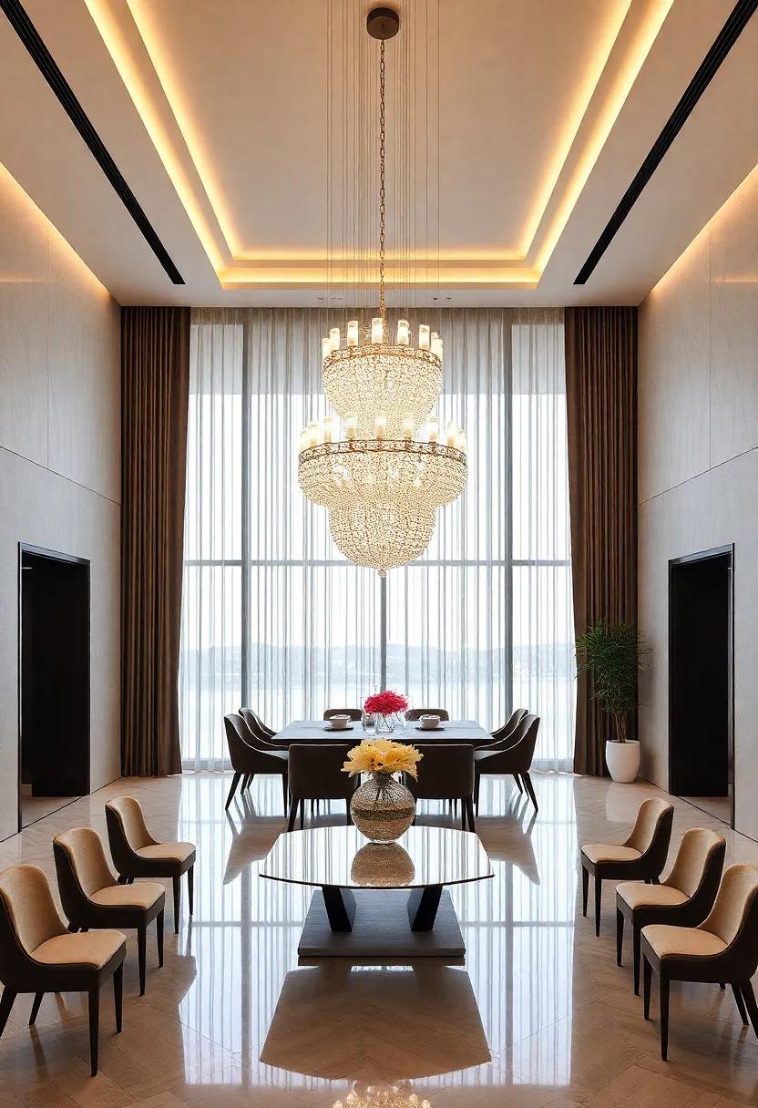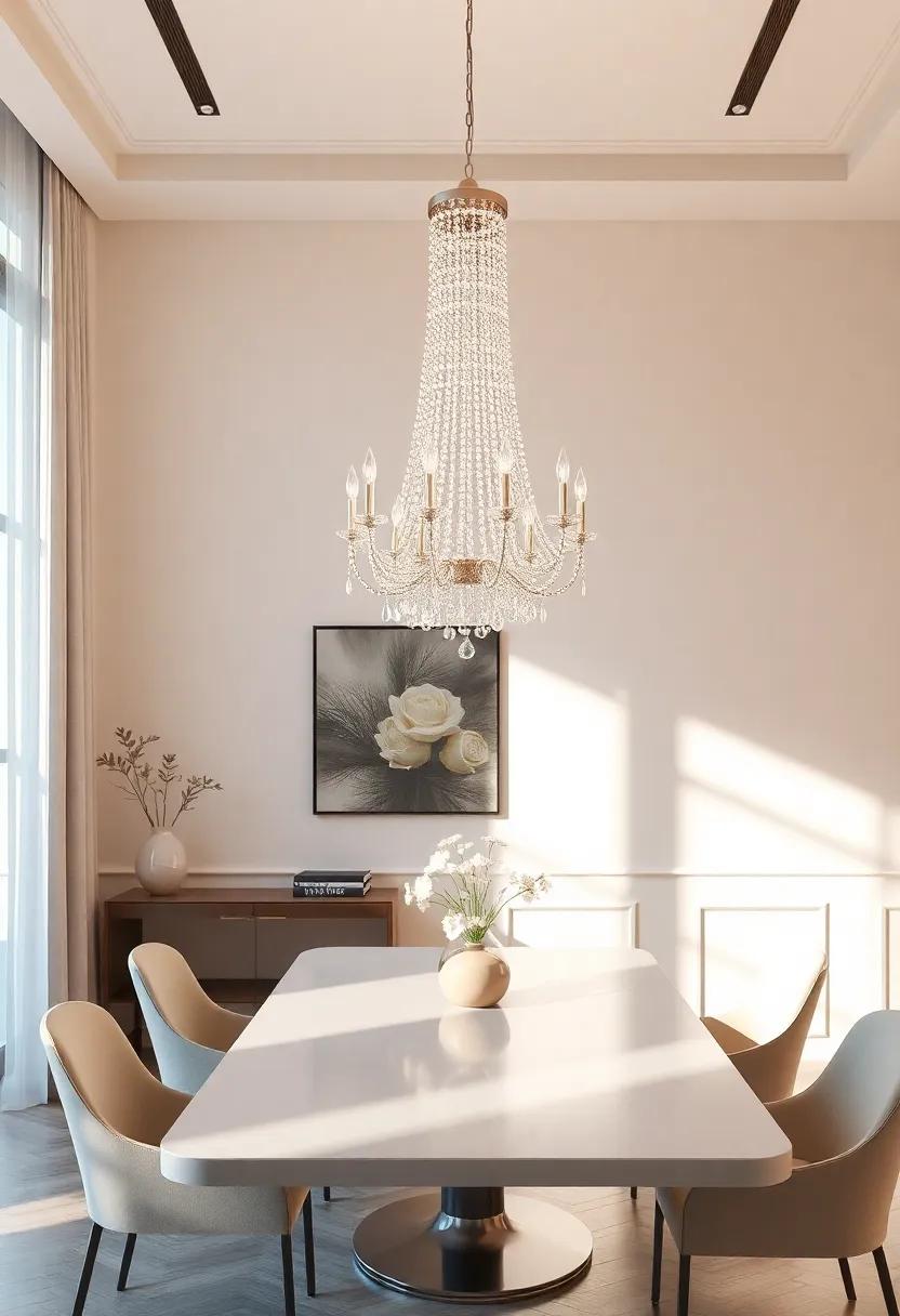 Utilizing layered lighting in combination with your chandelier can enhance both height and ambiance. Select light fixtures that work together harmoniously, such as pendant lights hanging lower over the dining table while the chandelier soars above. To visually ground the space while maintaining an airy feel, consider these strategies: