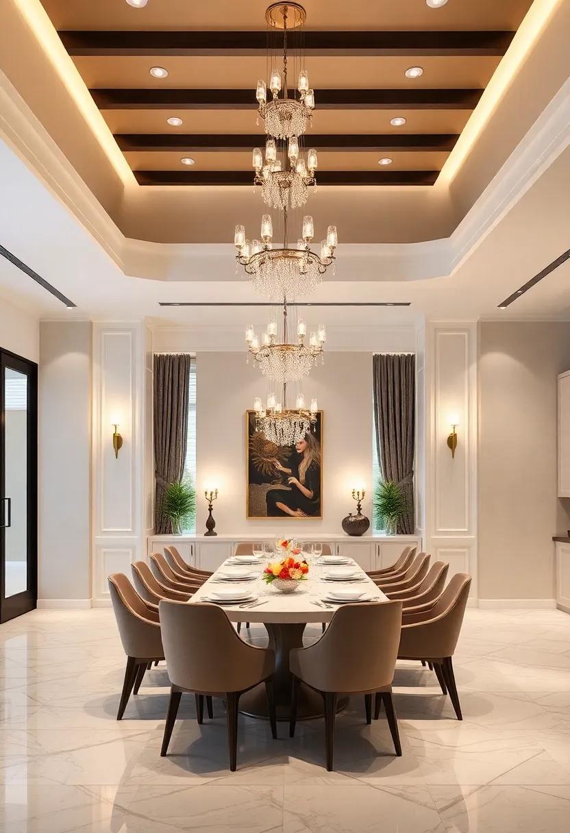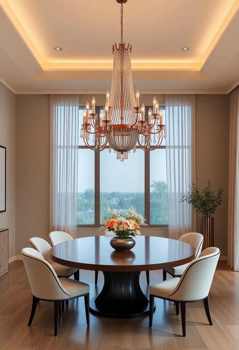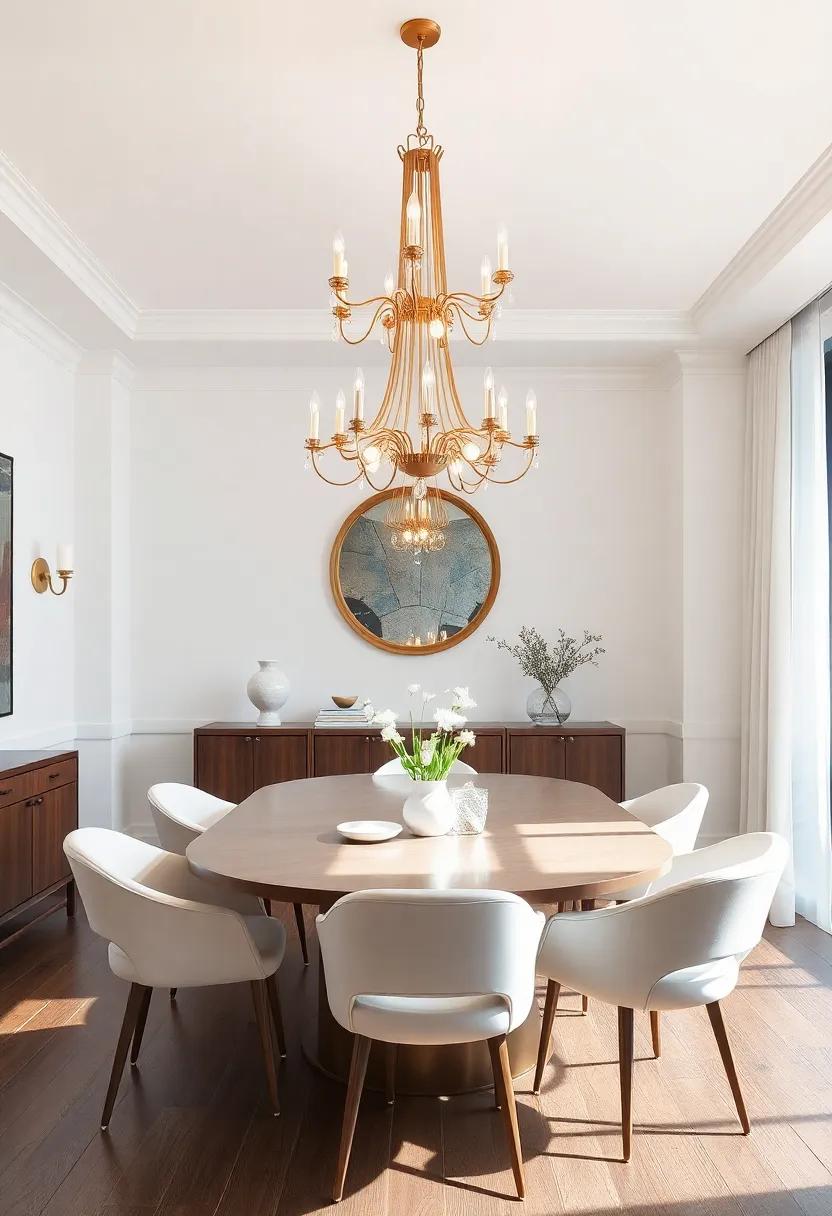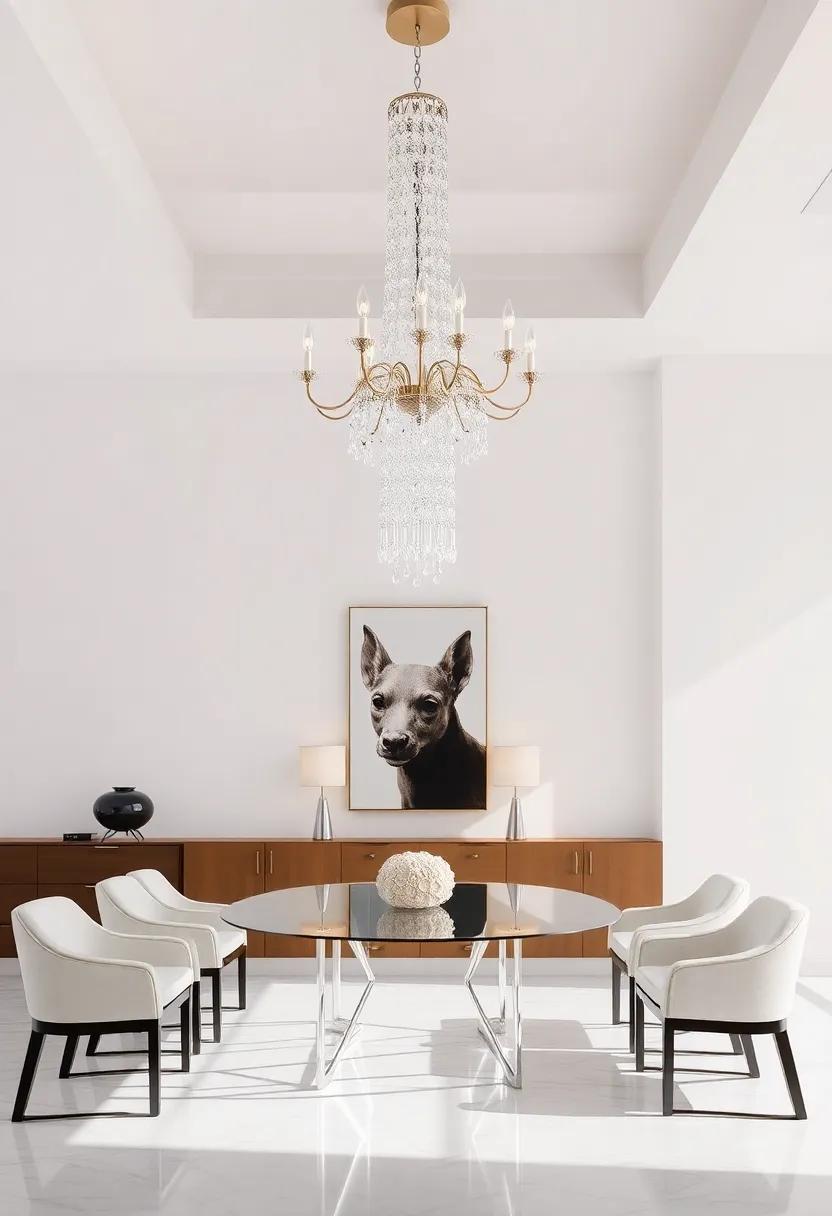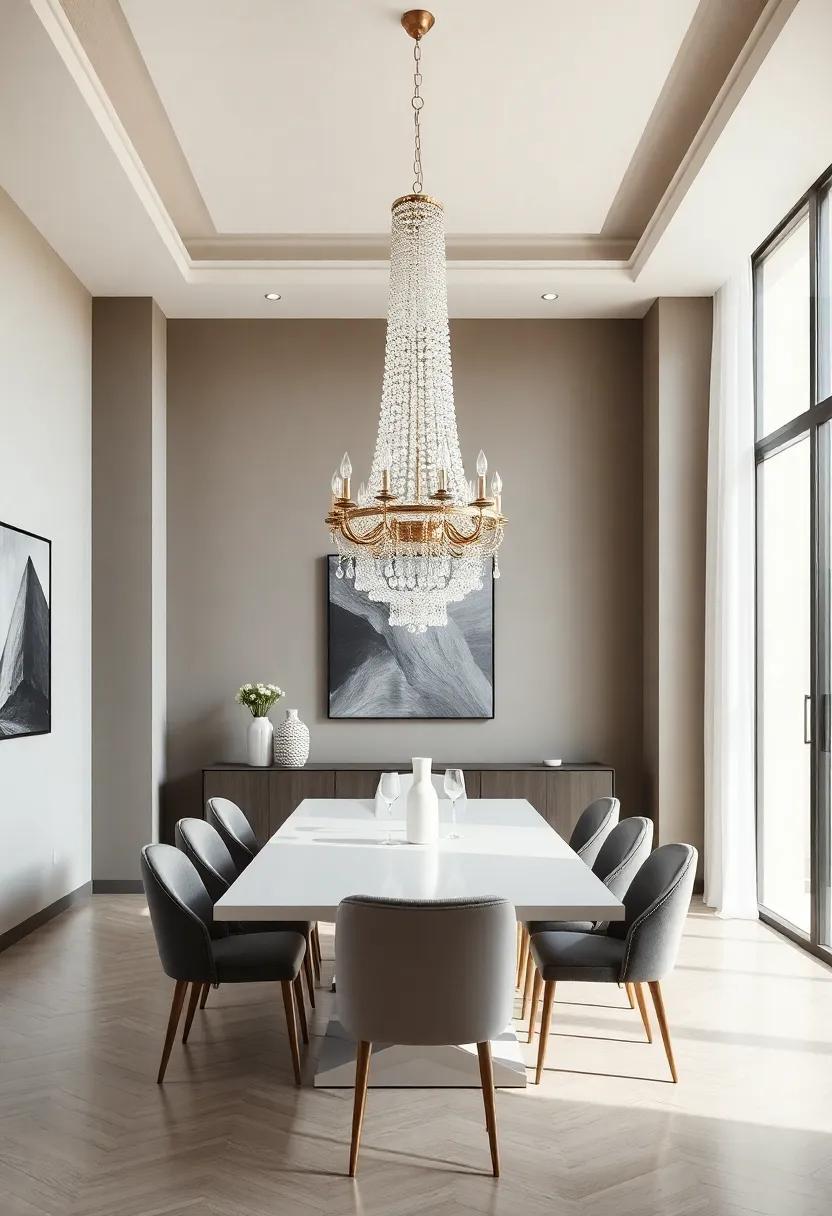 Utilizing layered lighting in combination with your chandelier can enhance both height and ambiance. Select light fixtures that work together harmoniously, such as pendant lights hanging lower over the dining table while the chandelier soars above. To visually ground the space while maintaining an airy feel, consider these strategies:
