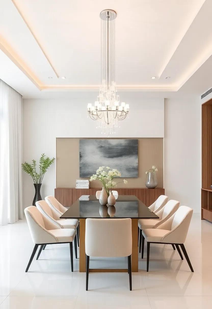 When selecting a minimalist chandelier for a luxury dining room, consider the following elements to achieve an exquisite ambiance: