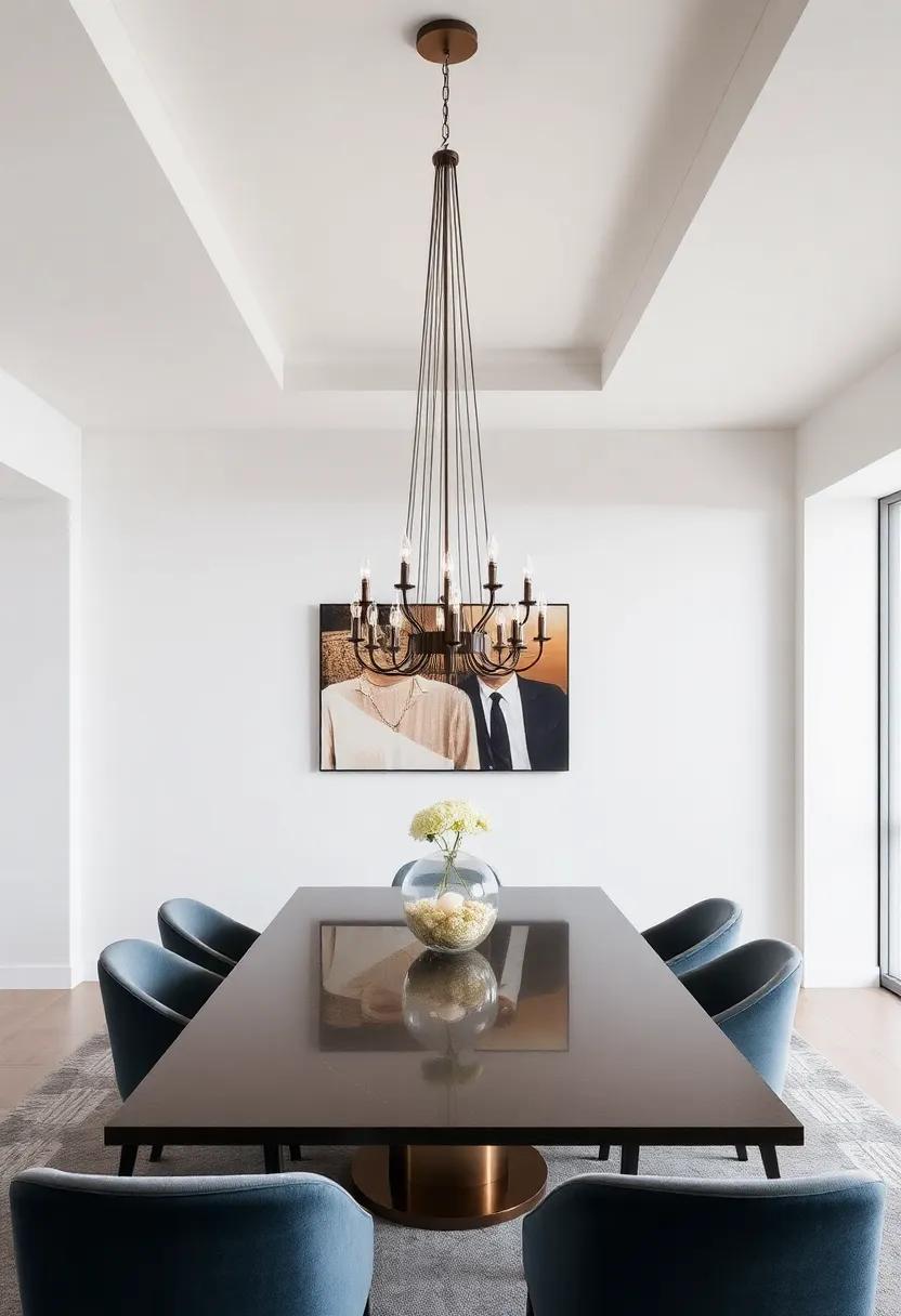 Pairing vintage chandeliers with contemporary dining room elements can create a pleasing contrast that enhances both styles. Consider introducing a dark walnut dining table or luxurious velvet chairs to balance the chandeliers’ old-world charm. For a harmonious feel, here’s a swift comparison of materials and their respective impacts on ambiance: