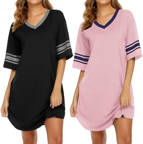 Our experience with this duo of nightgowns has proven to be quite delightful. Made from a soft blend of 95% Polyester and 5% Spandex, the fabric is both lightweight and comfortable, making it ideal for lounging and sleeping. The V-neck design adds a touch of casual elegance, while the short sleeves and above-knee length contribute to a relaxed, stylish look. We appreciate how the oversized t-shirt dress style allows for unrestricted movement, perfect for both sleep and leisurely mornings at home. The contrast color design offers a trendy twist, elevating the everyday nightwear experience.