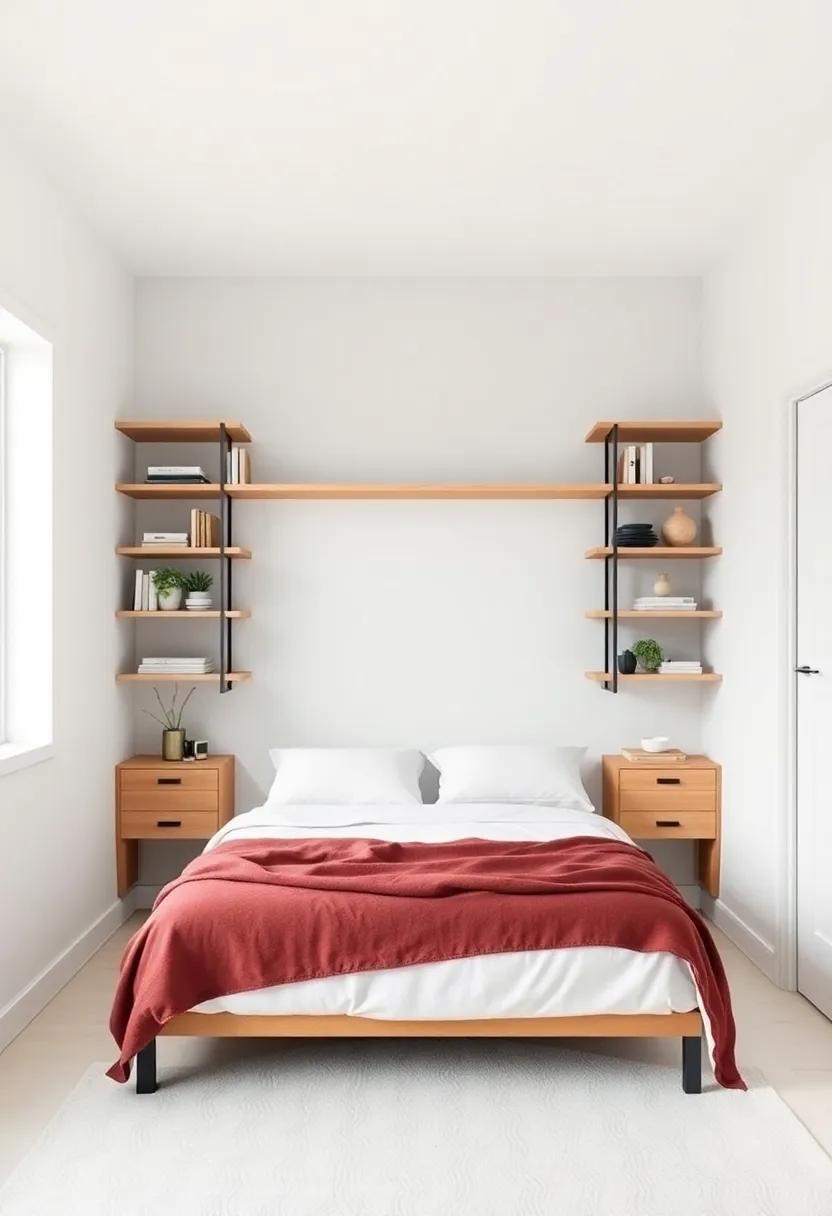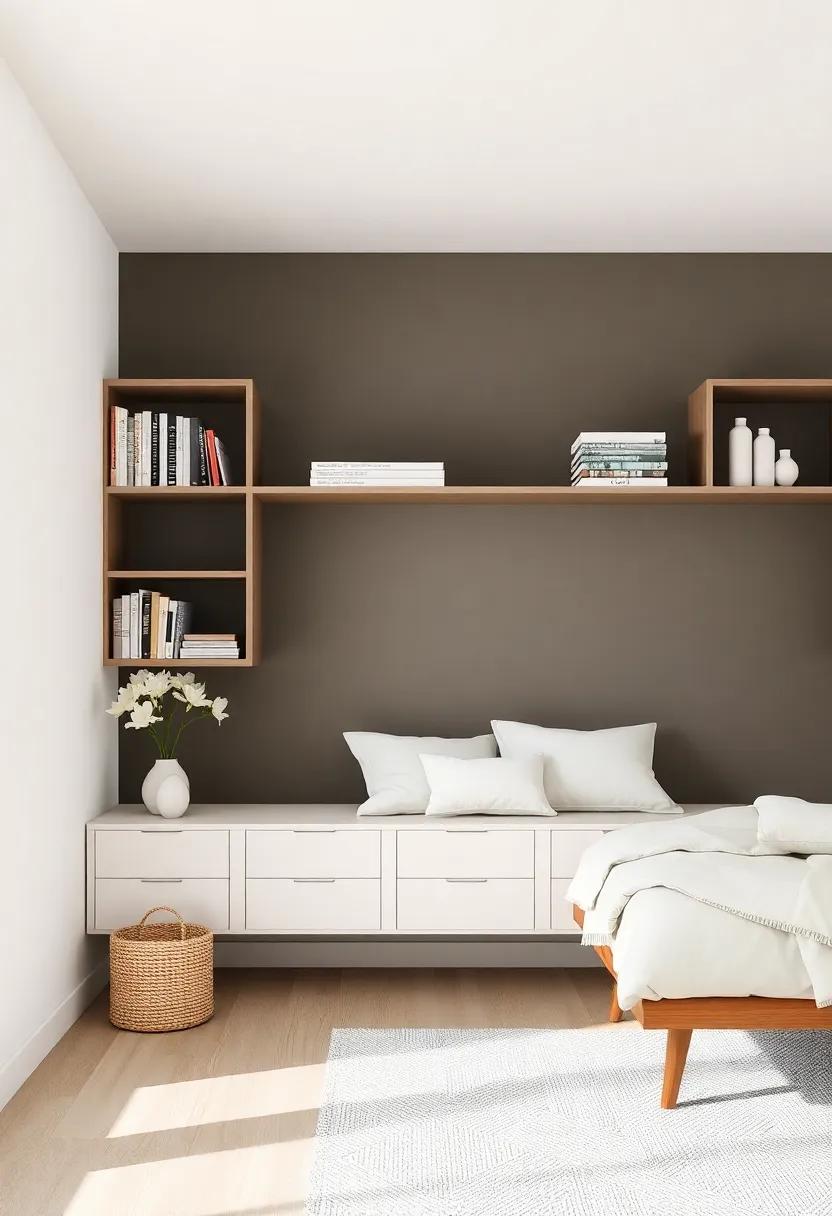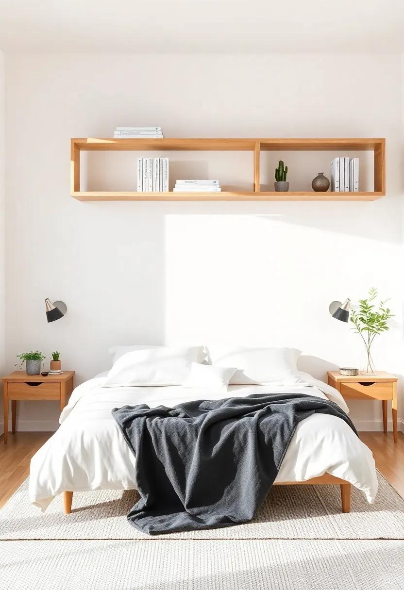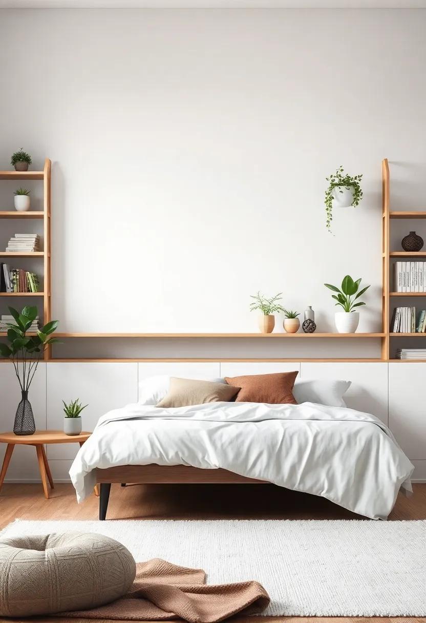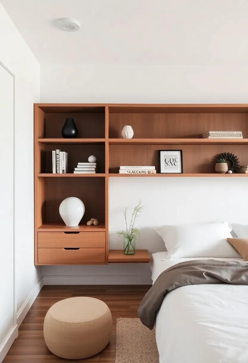 Embracing the ebb and flow of minimalism doesn’t mean sacrificing style; instead, it’s a festivity of functionality and elegance. Open shelving offers a perfect solution to maximize vertical space, ensuring your bedroom feels spacious while showcasing aesthetically pleasing elements. To create an inviting atmosphere, consider incorporating a mix of practical items and decorative pieces. Some ideas for your open shelves include: