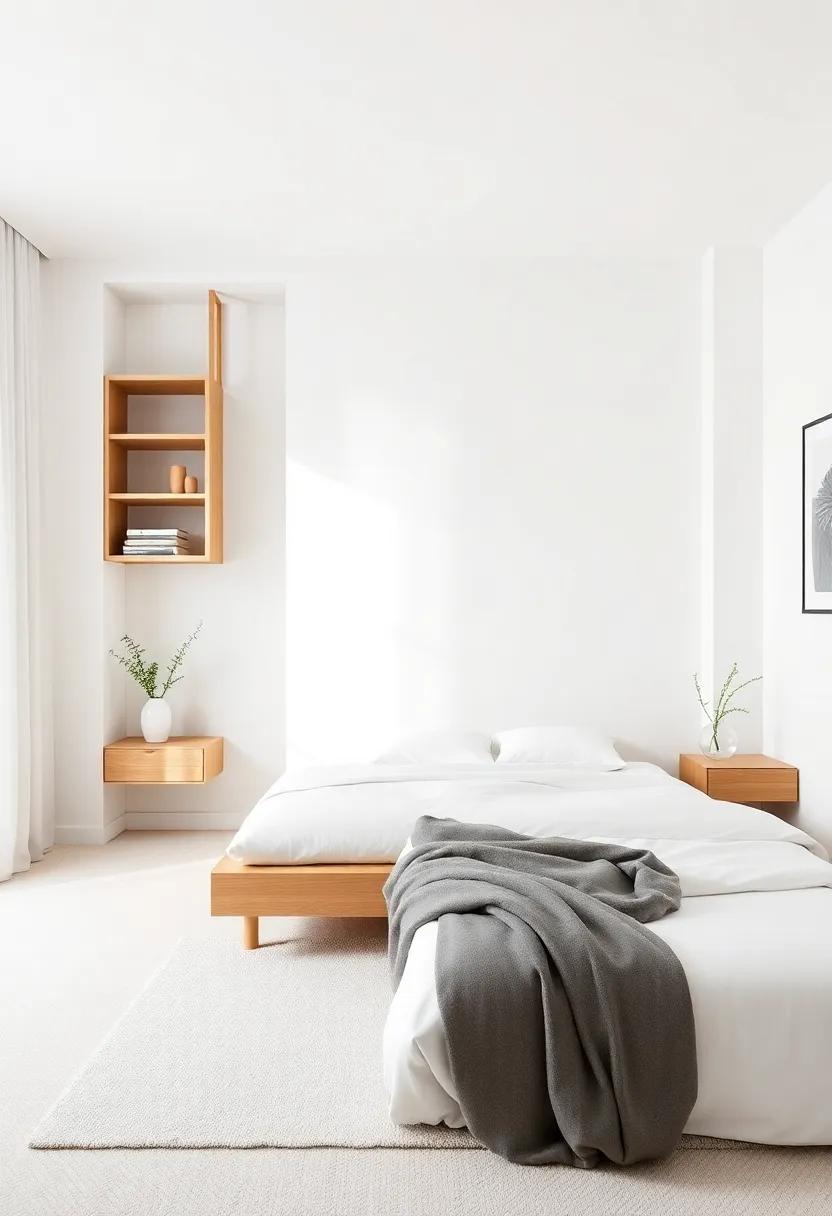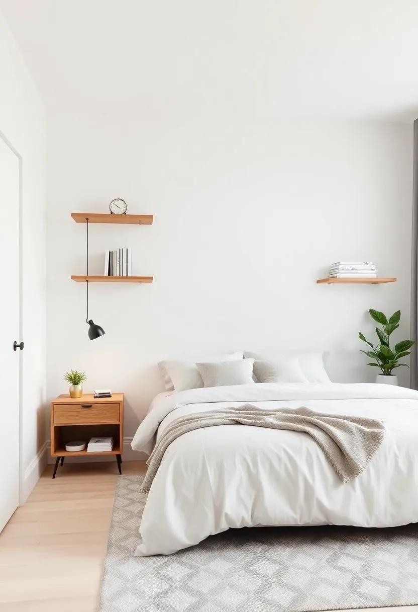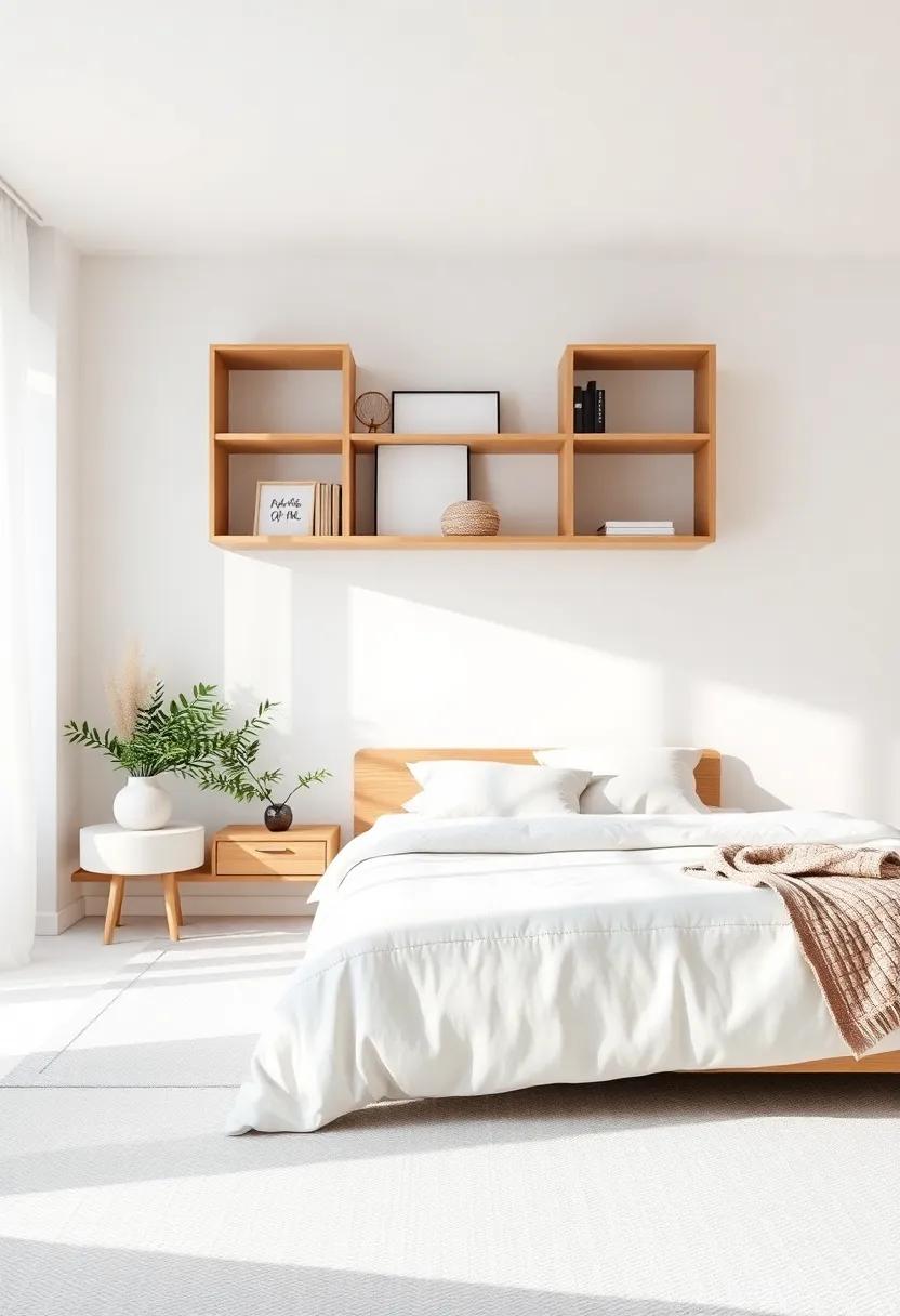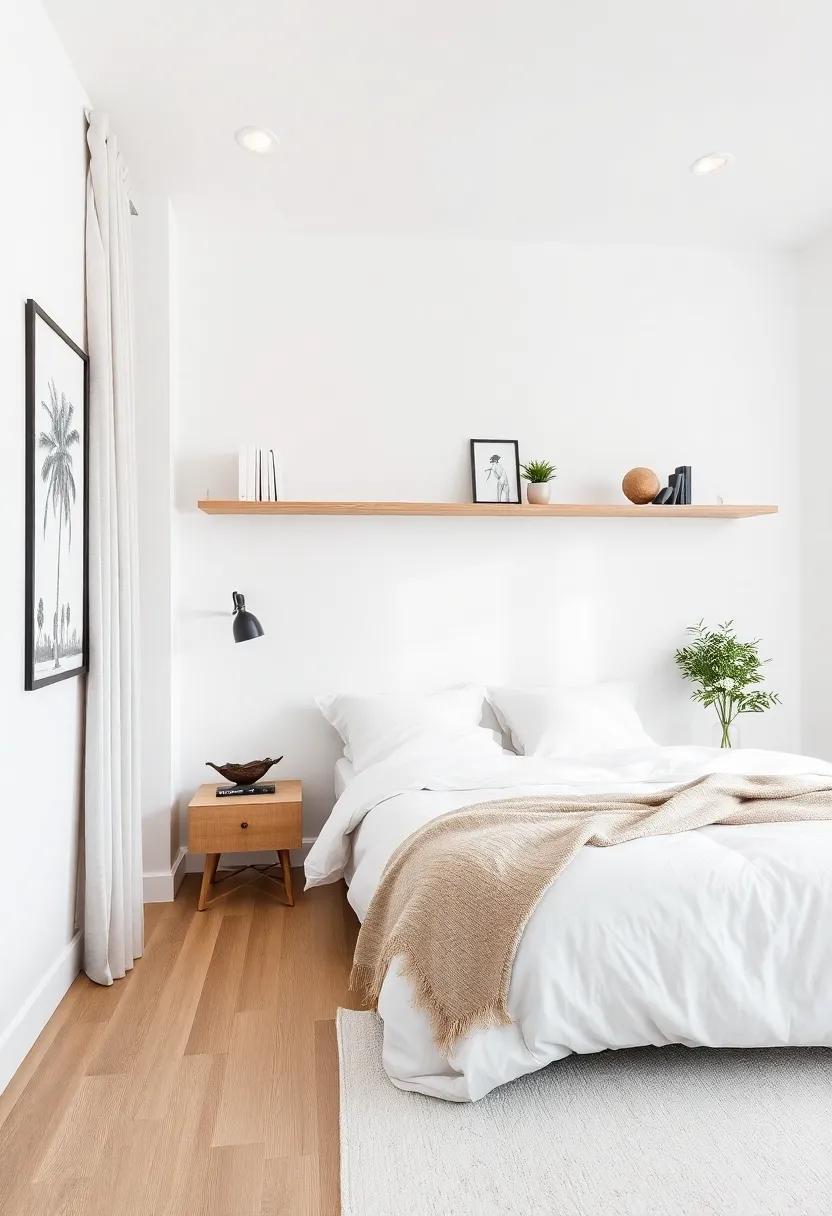 Embracing the ebb and flow of minimalism doesn’t mean sacrificing style; instead, it’s a festivity of functionality and elegance. Open shelving offers a perfect solution to maximize vertical space, ensuring your bedroom feels spacious while showcasing aesthetically pleasing elements. To create an inviting atmosphere, consider incorporating a mix of practical items and decorative pieces. Some ideas for your open shelves include: