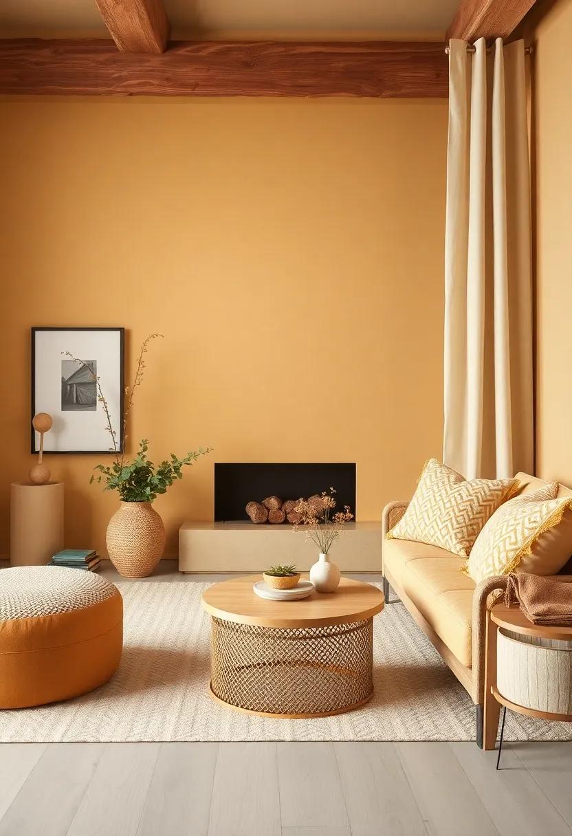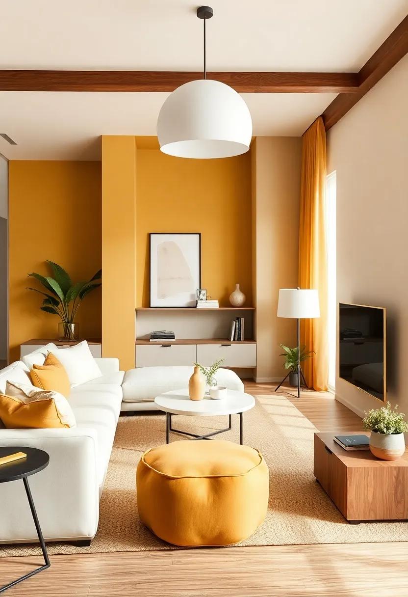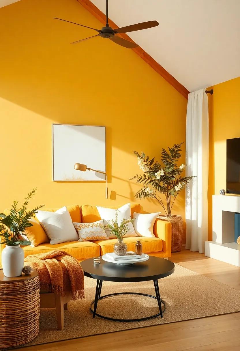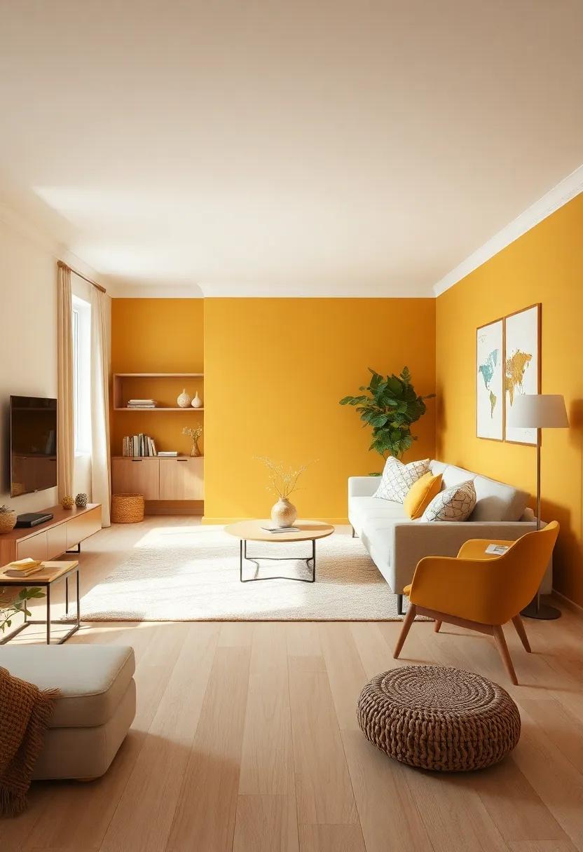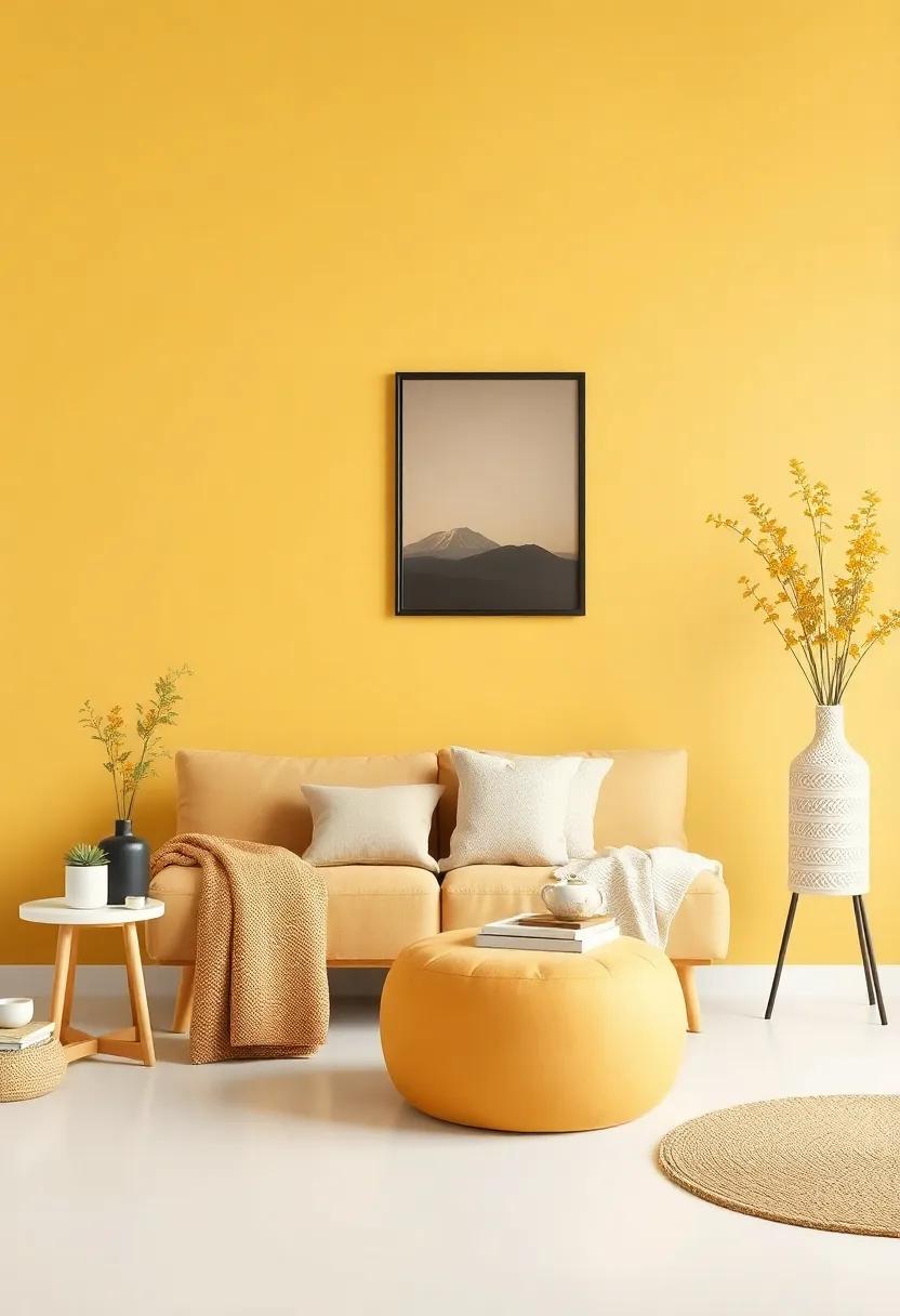 - Focal Points: Create distinct areas by using bold mustard for accent walls or statement furniture pieces.