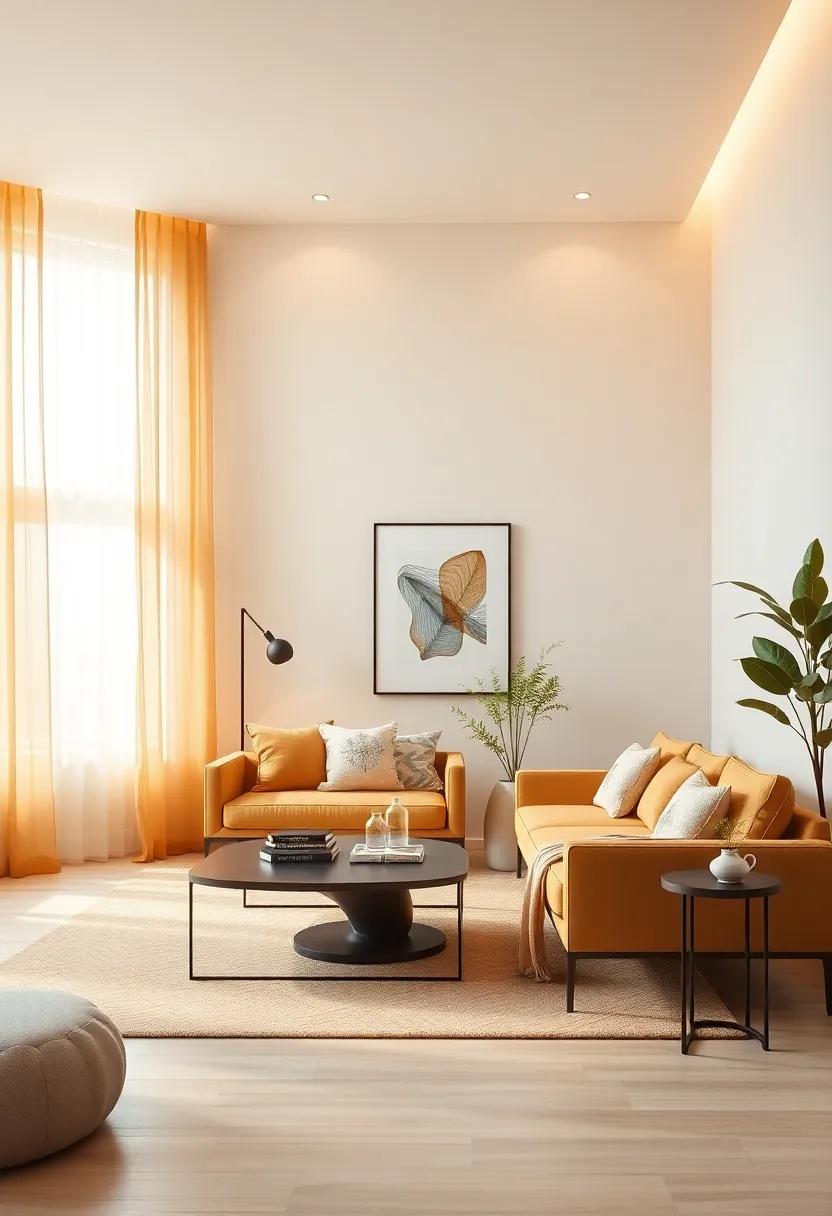 - Breezy Drapery: Lightweight fabrics in cream can frame windows, complementing the warmth of mustard hues on walls.