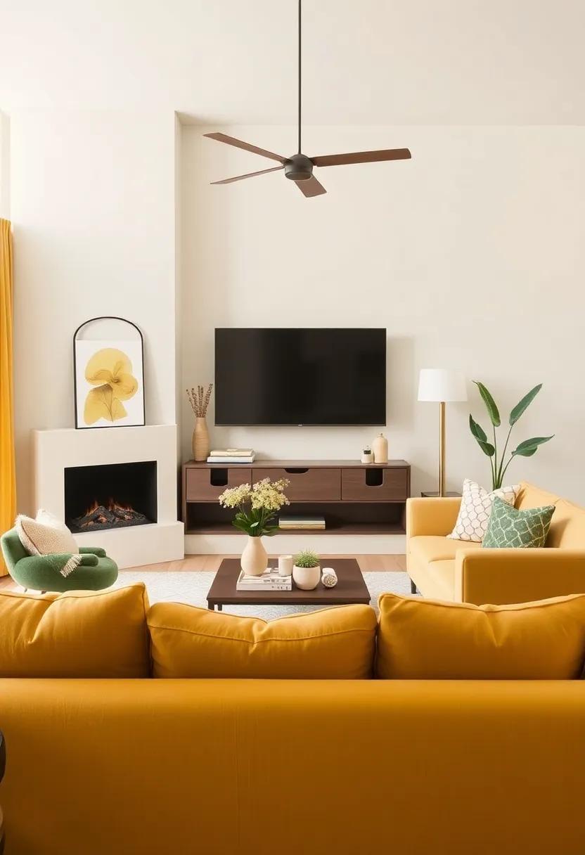 - Artwork: Incorporate abstract pieces that highlight muted mustard tones to tie the room together.