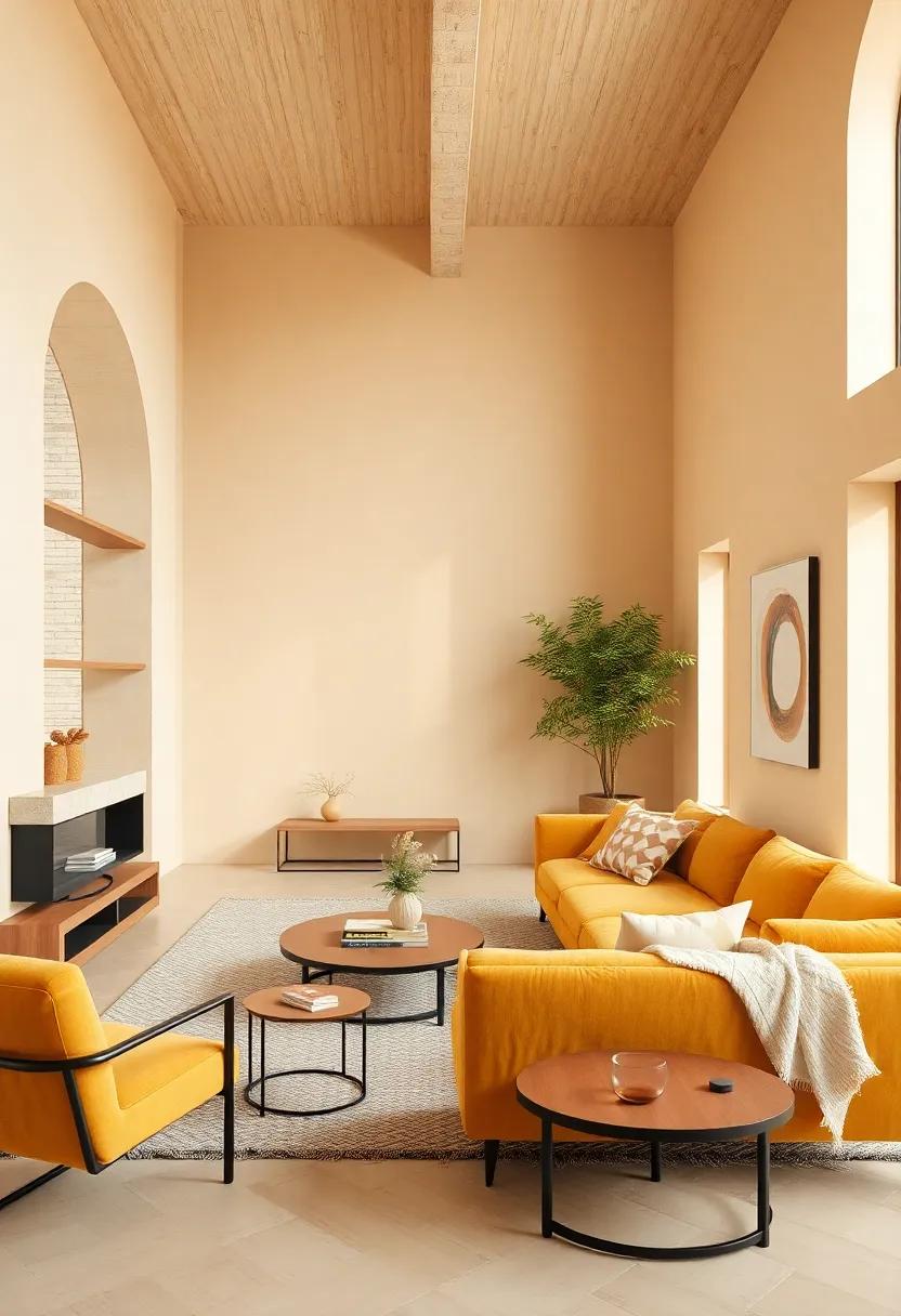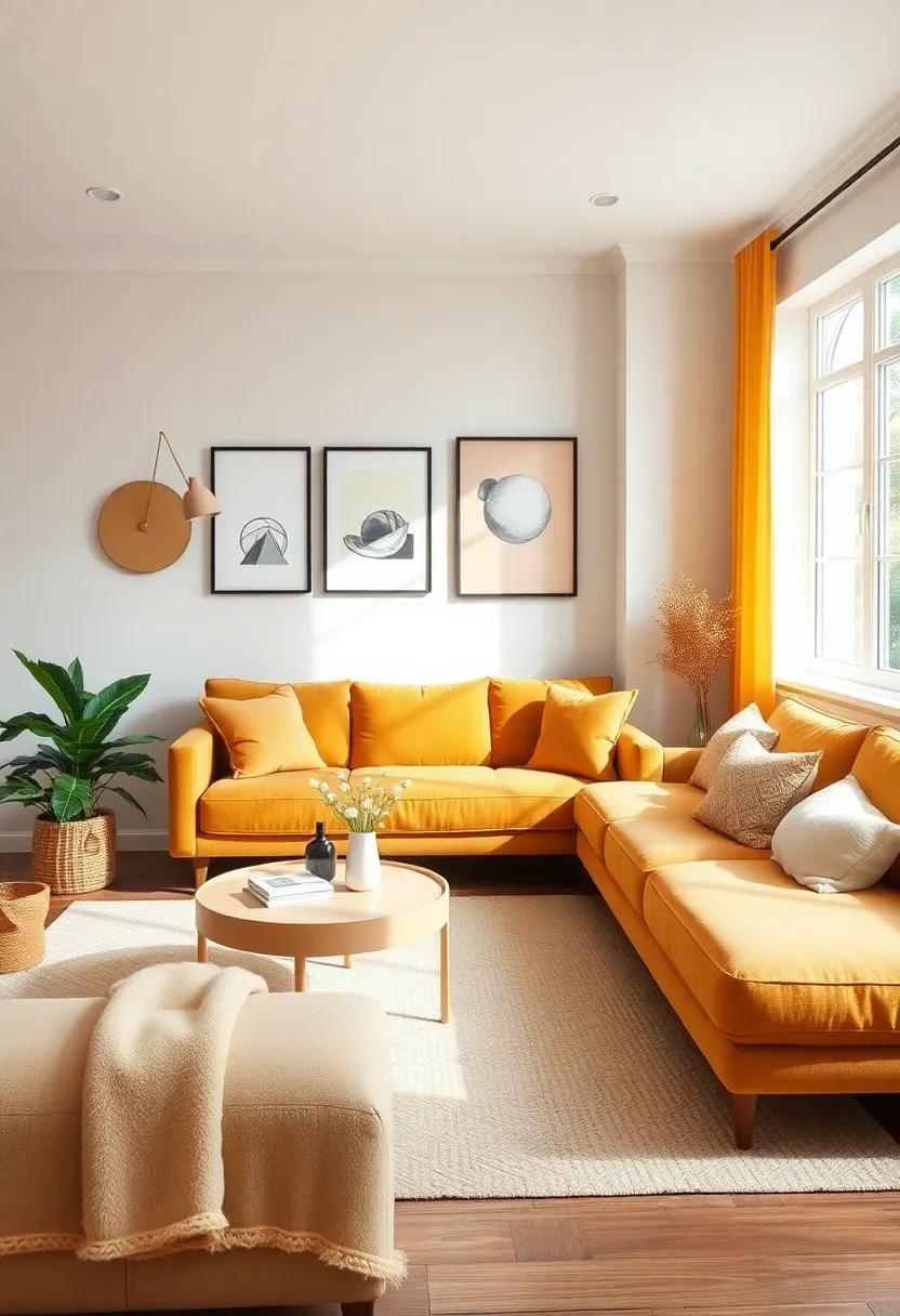 To enhance the warm and inviting atmosphere created by a mustard and cream palette, consider furniture pieces that embody both comfort and style. Soft textures are paramount; opt for plush sofas upholstered in velvety fabric to provide a touch of luxury. Pair these with armchairs featuring a delicate mustard hue to maintain balance, ensuring each piece complements the overall color scheme. Incorporating wooden coffee tables with a creamy finish can bring a natural element into your space, harmonizing beautifully with the muted tones and offering a sturdy focal point for gatherings.