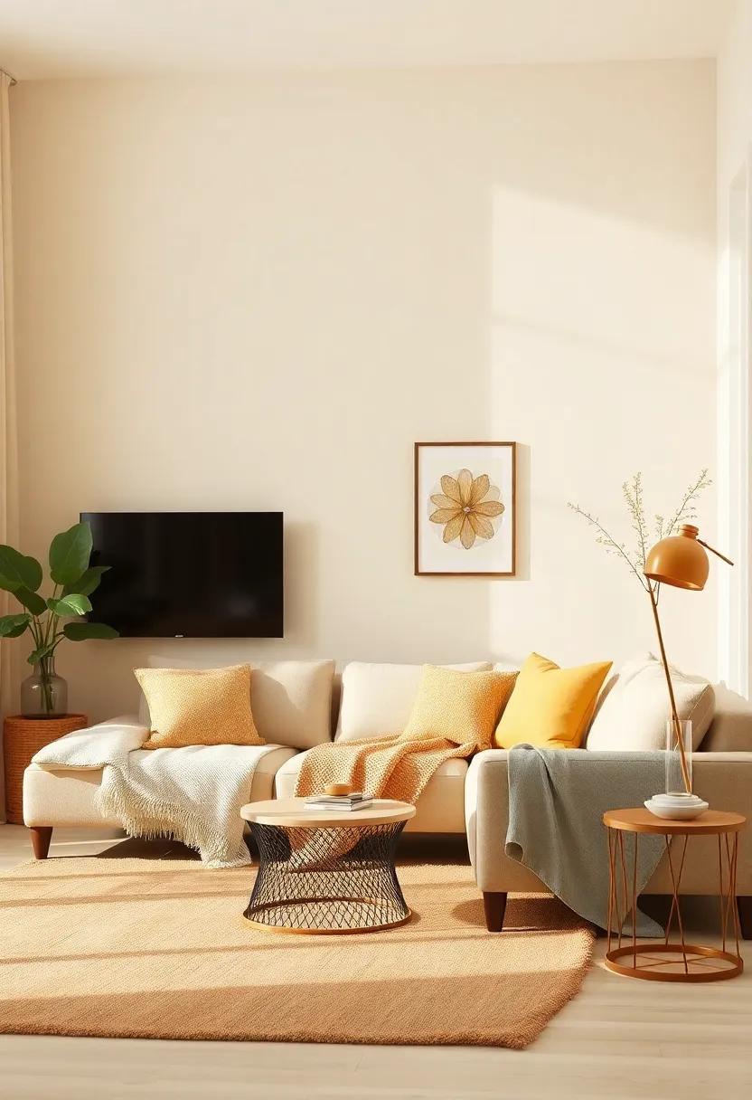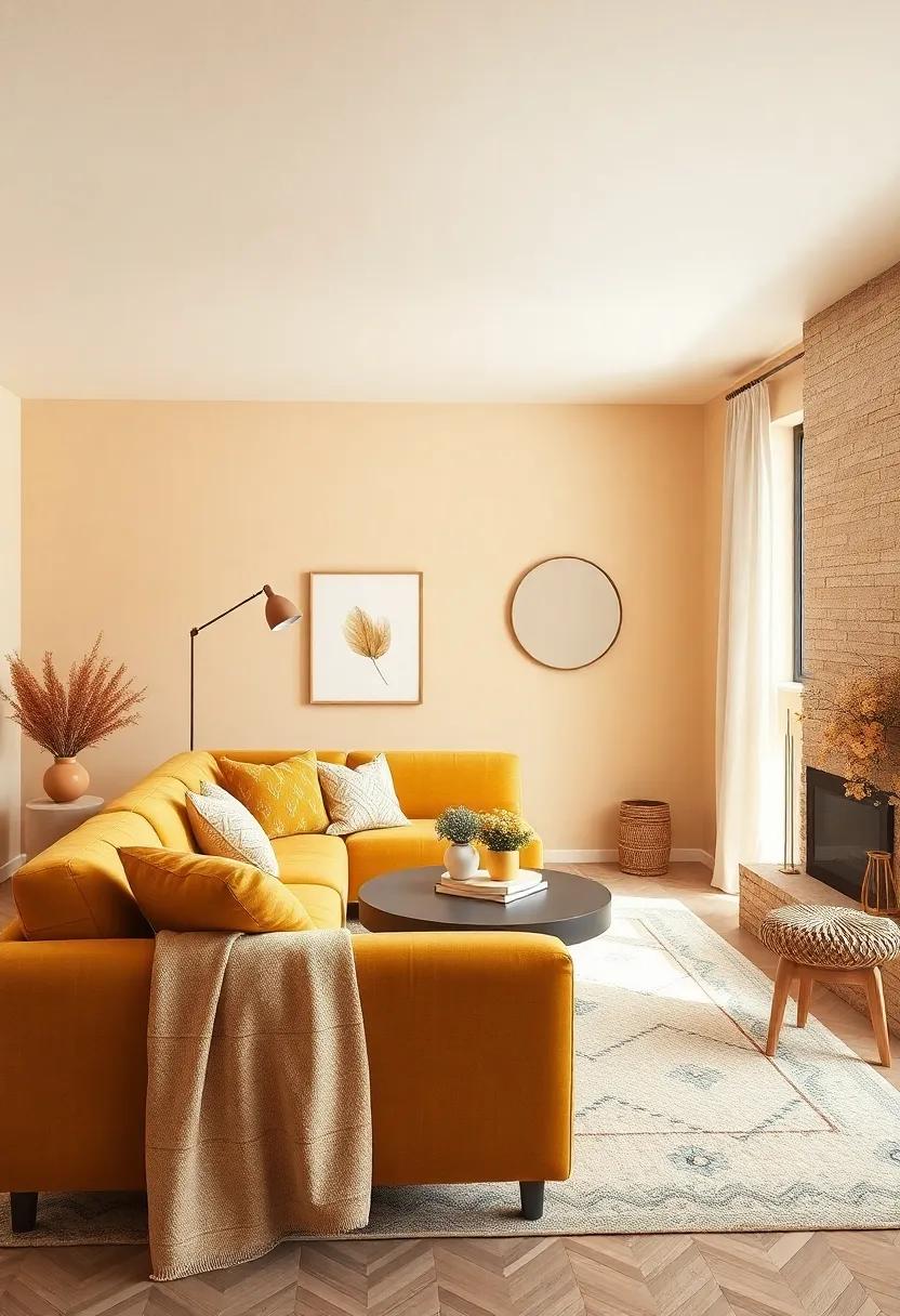 By combining these elements thoughtfully, you create a layered environment that feels cohesive and inviting. Whether it’s through layering fabrics or integrating different design styles, the interplay between muted mustard and cream can transform your cozy living space into a sanctuary of elegance.