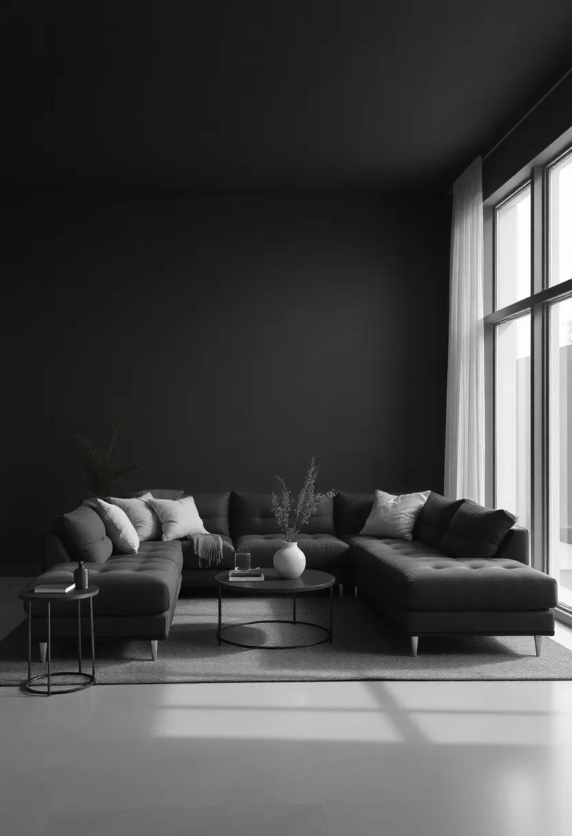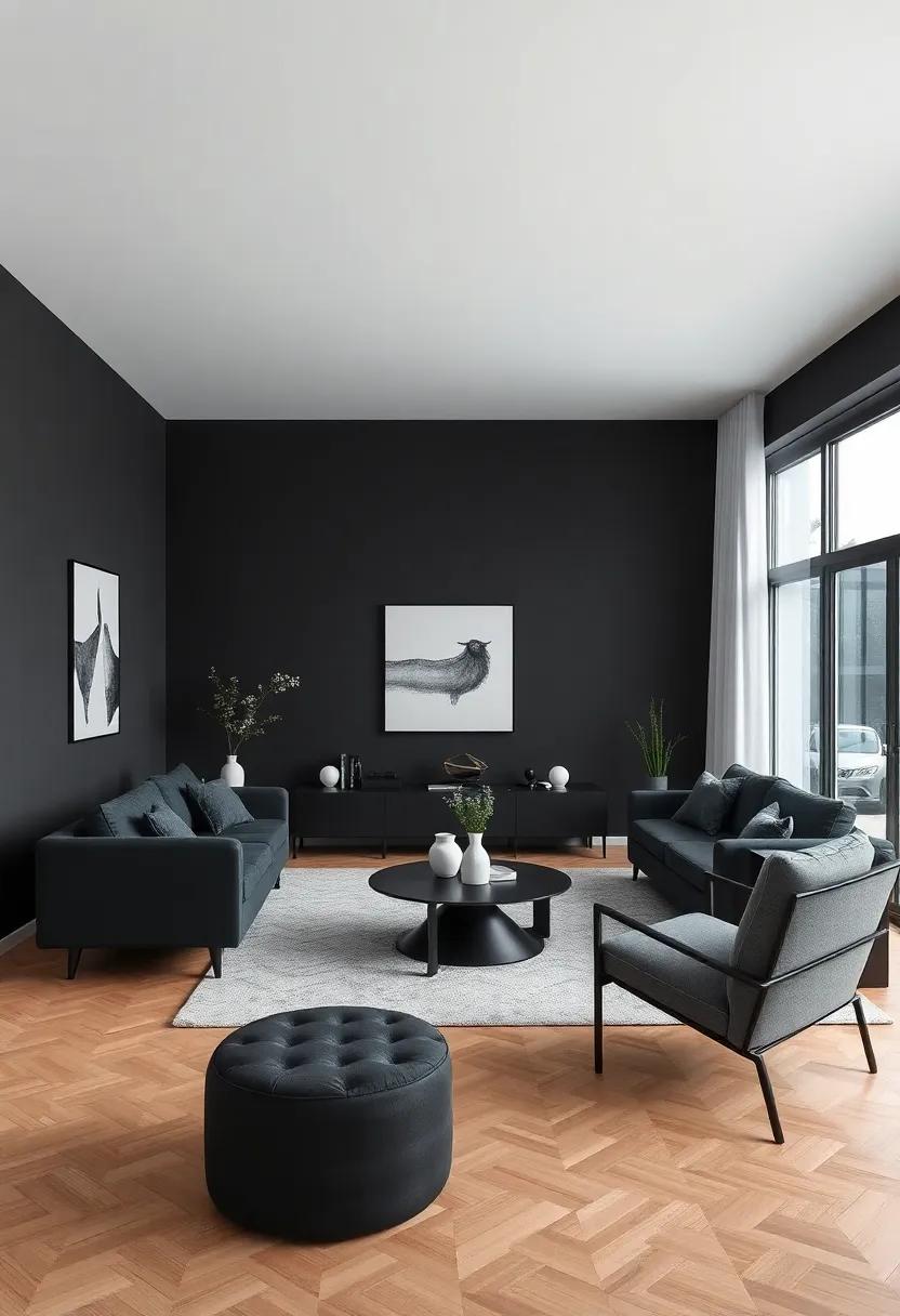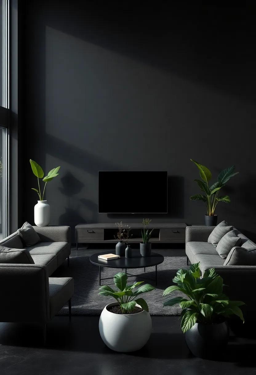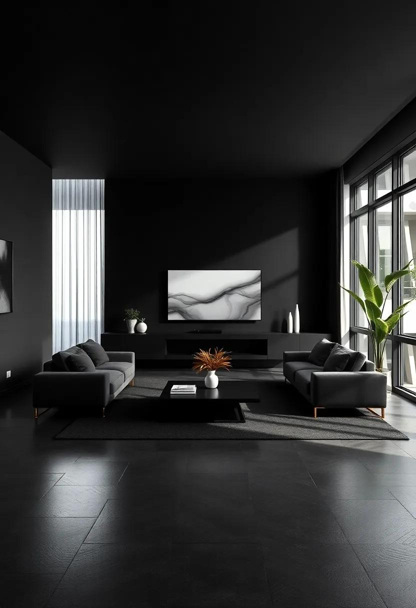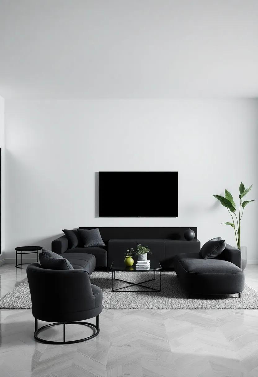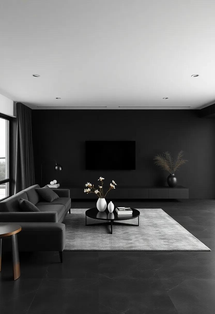 the minimalist black living room serves as a canvas of sophistication, inviting you to explore a world where simplicity reigns and elegance flourishes. With every sleek line and understated accent, this design philosophy encourages us to embrace the beauty of intentionality, transforming our spaces into havens of tranquility. As we step into a realm defined by striking contrasts and muted tones, we discover that less truly can be more—a reminder that refinement lies not just in the objects we choose to surround ourselves with, but in the thoughtful pauses we allow within our living spaces. So, as you embark on your journey to create a minimalist black living room, remember to celebrate the allure of simplicity, and let your personal style shine through the elegant shadows that dance across your walls.