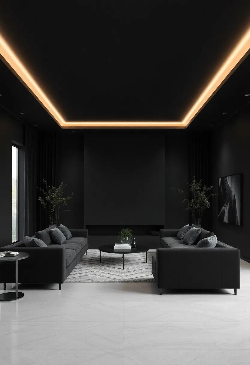 - Lighting Solutions: Use ambient and accent lighting strategically to enhance the richness of the black hues.