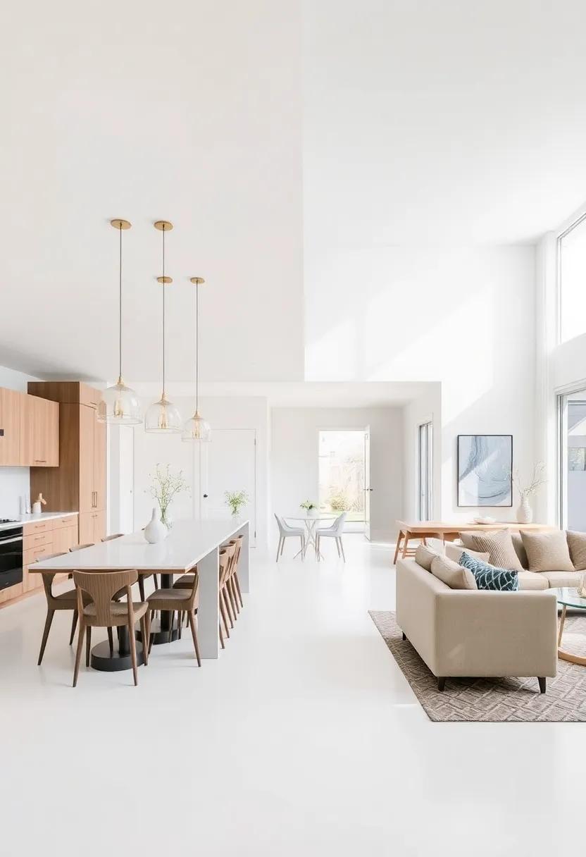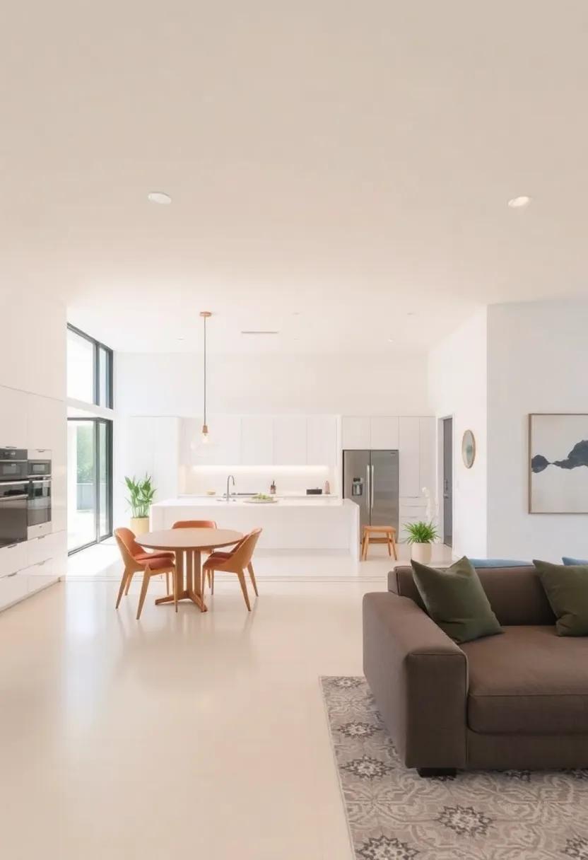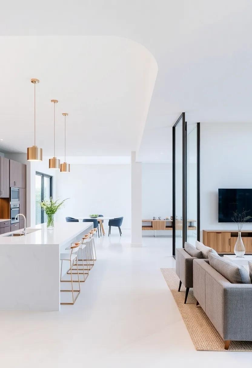 - Defined zones: Use area rugs or lighting to designate different functional areas without interrupting the open feel.