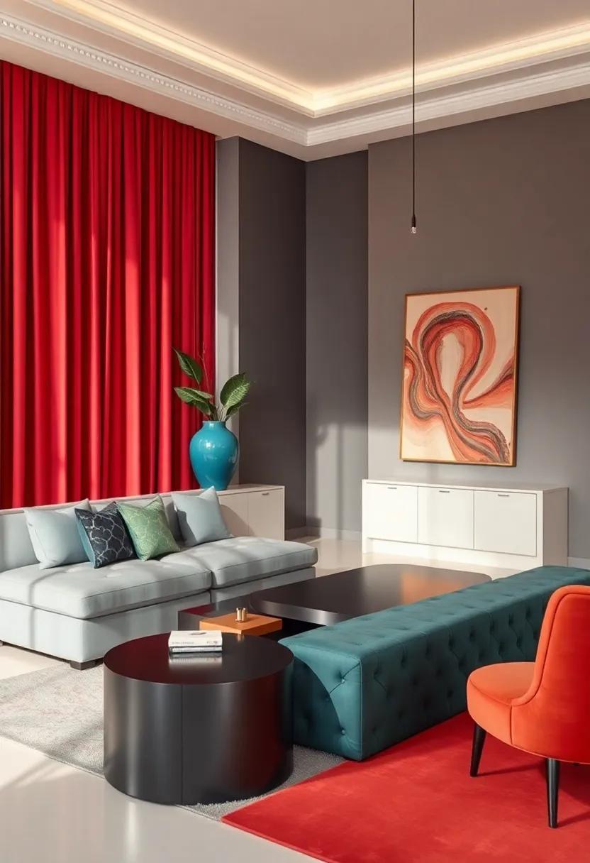 - bold Colors: Vivid hues juxtaposed with neutrals create visual interest.