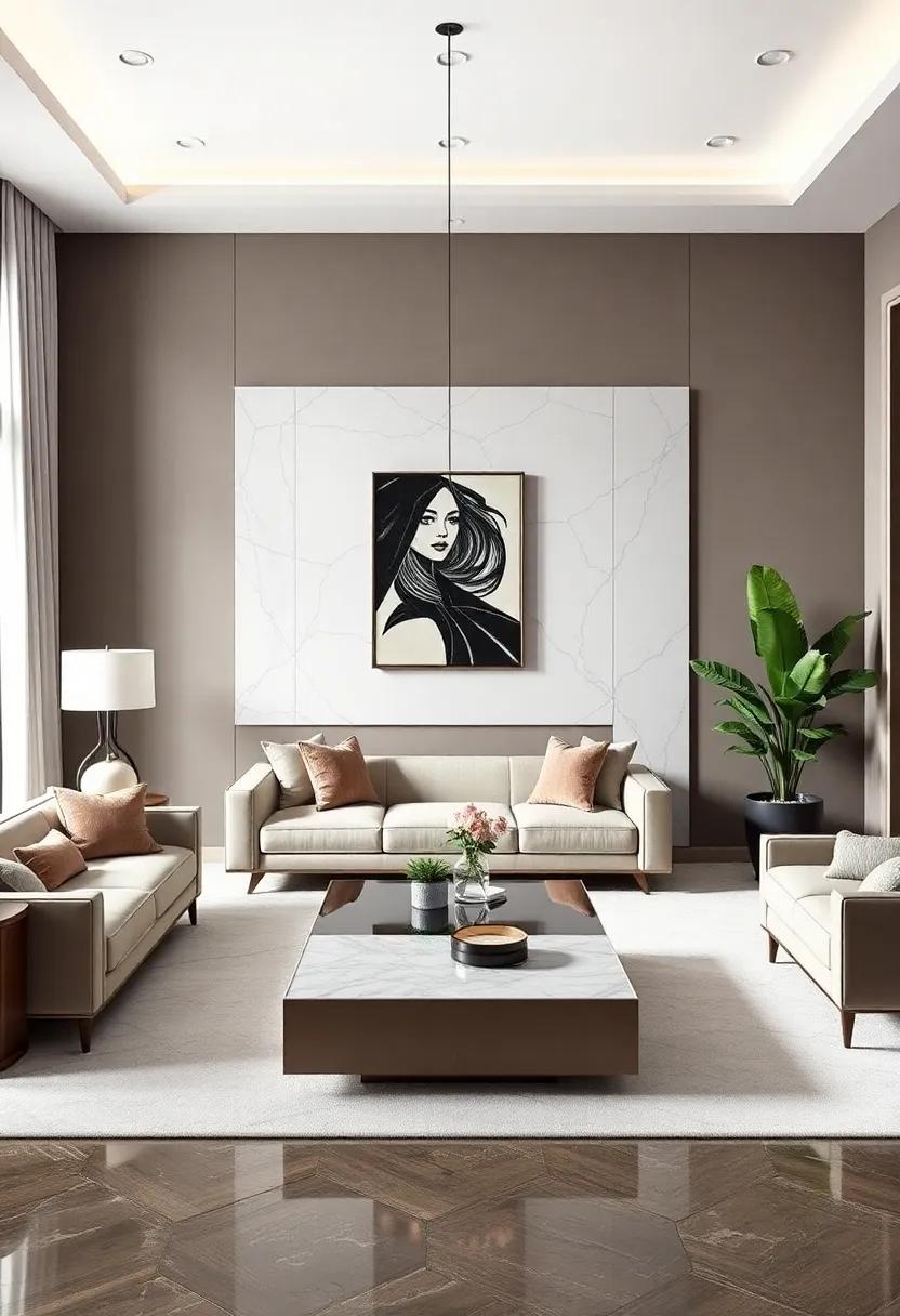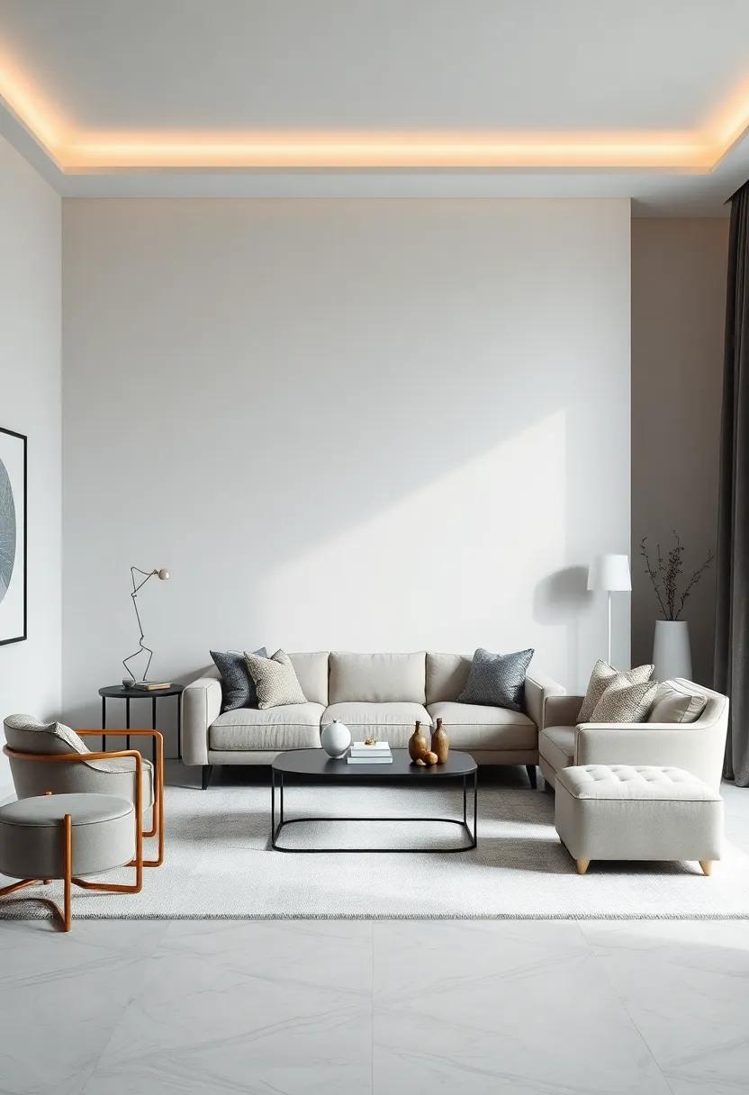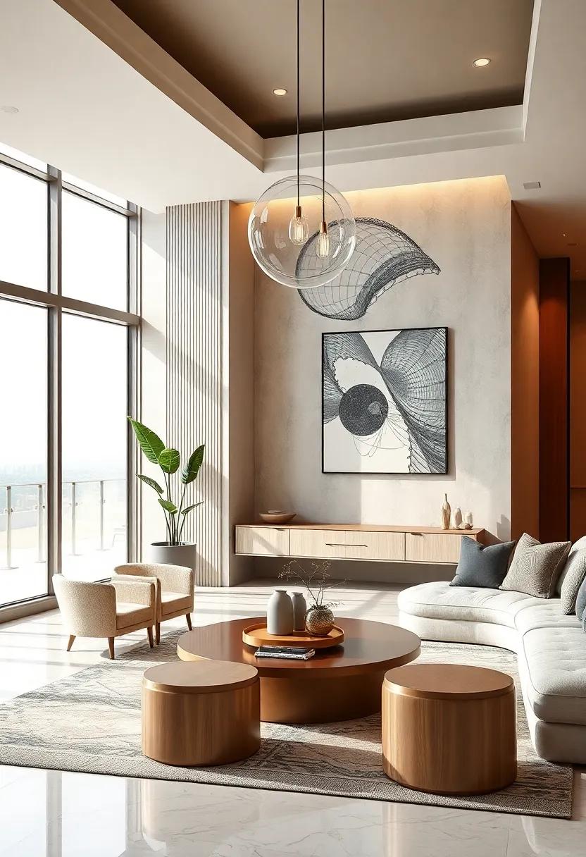 - Unique Shapes: curvaceous sofas and angular tables add a sculptural element.