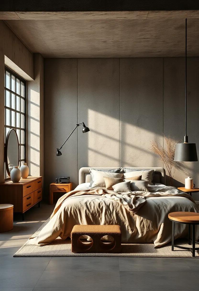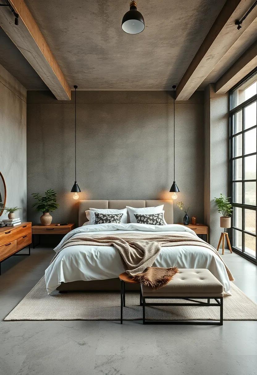 Neutral tones create a serene backdrop in industrial bedrooms, allowing the minimalist furniture to shine without overwhelming the senses.this color palette embraces subtle variations of beige, gray, and white, generating a harmonious environment that feels both chic and relaxed.By opting for these softer shades, you can highlight the textures inherent in industrial design, such as exposed brick, metal accents, and weathered wood. The interplay of these elements within a neutral spectrum creates a visual balance, inviting a sense of calm and clarity that’s essential for restful spaces.