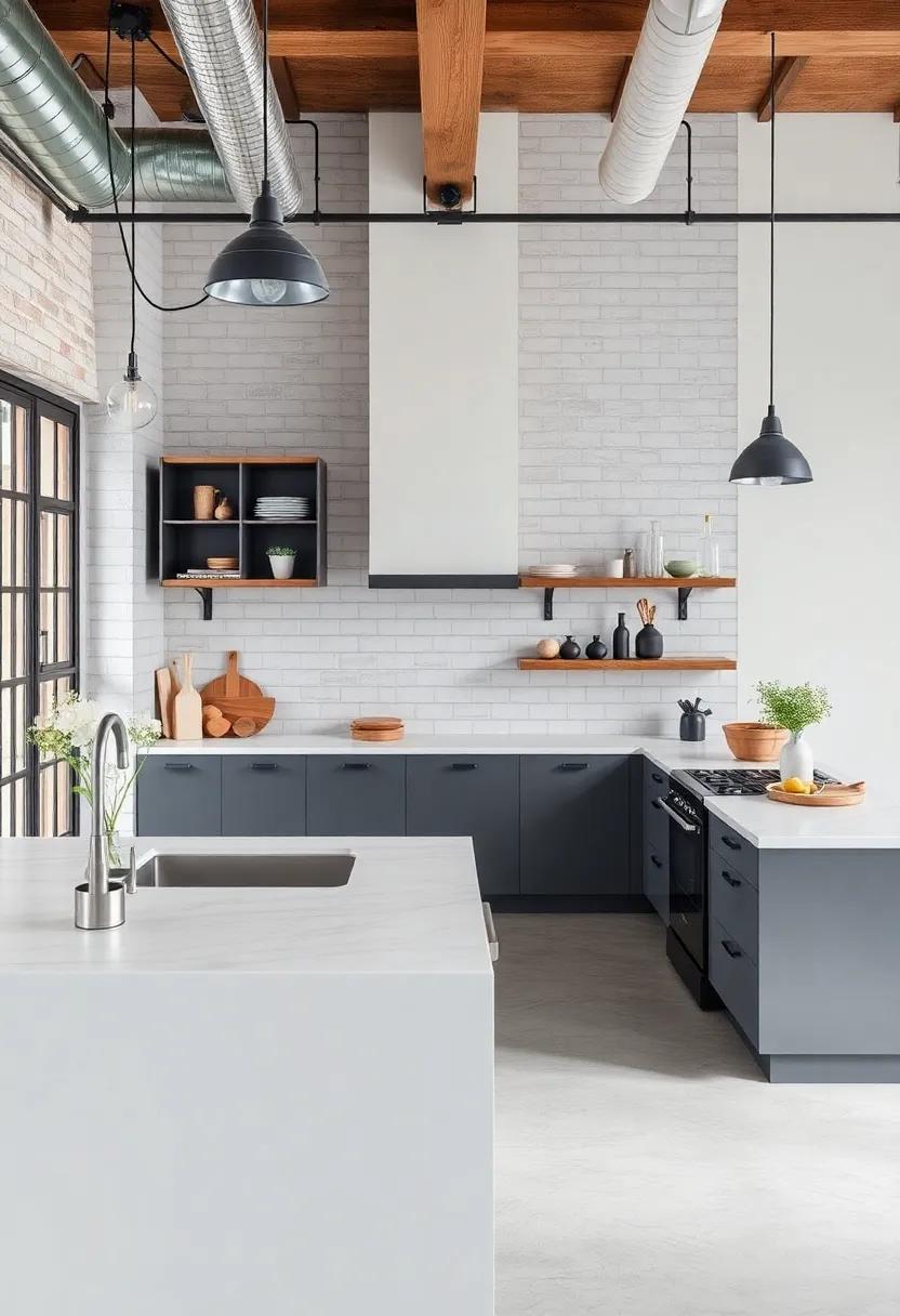 Incorporating exposed brick walls into your kitchen design taps into the beauty of raw materials, transforming an ordinary space into an industrial masterpiece.The rich textures and warm tones of brick not only establish a rustic charm but also serve as a stunning backdrop for contemporary appliances and sleek countertops. This juxtaposition creates a visually intriguing atmosphere that enhances the overall aesthetic of your kitchen, making it both functional and inviting. To further enhance this look, consider the following: