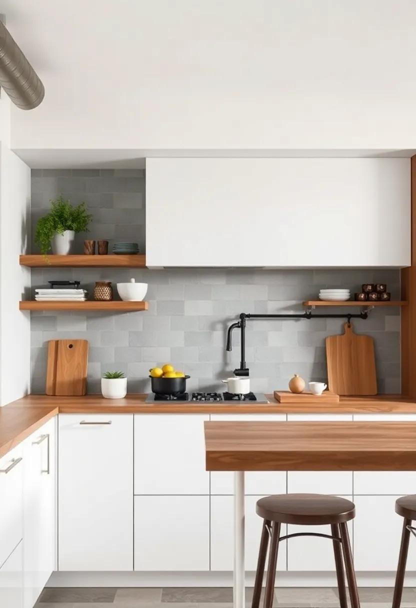 - Mix textures: Combine materials like glass jars, wood cutting boards, and ceramic dishes to add depth.