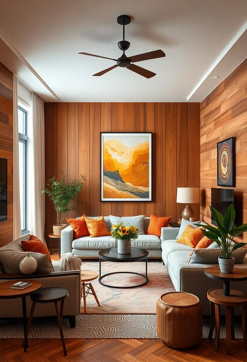 Transforming small living rooms into inviting spaces often begins with the vibrant interplay of artwork and accessories against rich wooden panels. The warmth of wood provides a perfect backdrop that enhances colors and textures, allowing art pieces to truly shine. Consider incorporating pieces that echo the natural tones of the wood—such as earthy paintings, abstract prints with warm hues, or even textured textiles. These elements not only create a harmonious feel but also add layers of interest that make the space immediately more engaging.