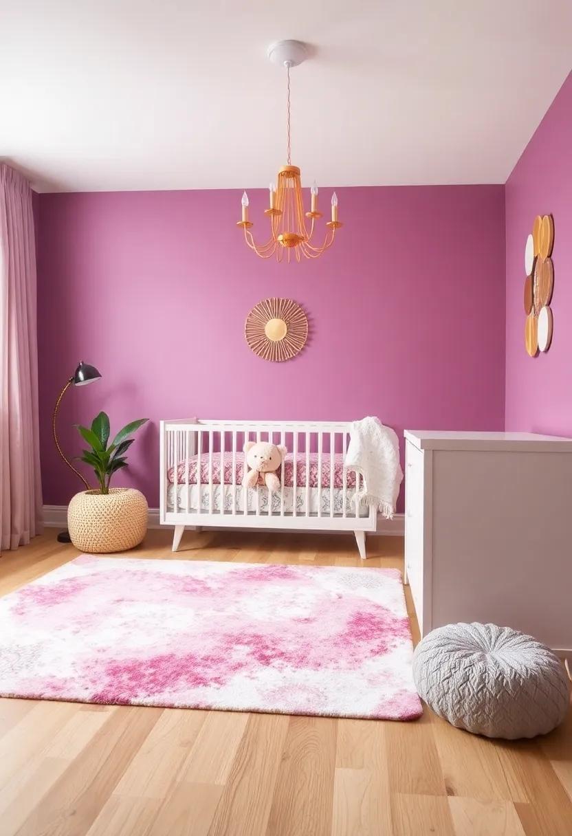 Choosing the right rug is a delightful way to add character and charm to a girls’ nursery with an enchanting plum and gold theme. A playful rug can serve as a vibrant focal point while also providing comfort for your little one’s adventures. Look for options that feature whimsical patterns or textures, enhancing both the aesthetics and the sensory experience. Consider materials that are soft and easy to clean, ensuring practicality amidst all the joy and mess that comes with nurturing a child.
