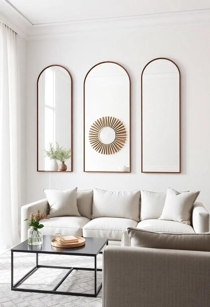 another impactful way to use mirrors is by creating a gallery wall. Combine various sizes and shapes of mirrors with artwork or decorative shelves to craft a visually dynamic‌ feature that ‌reflects your personality. Here are some ideas to consider: