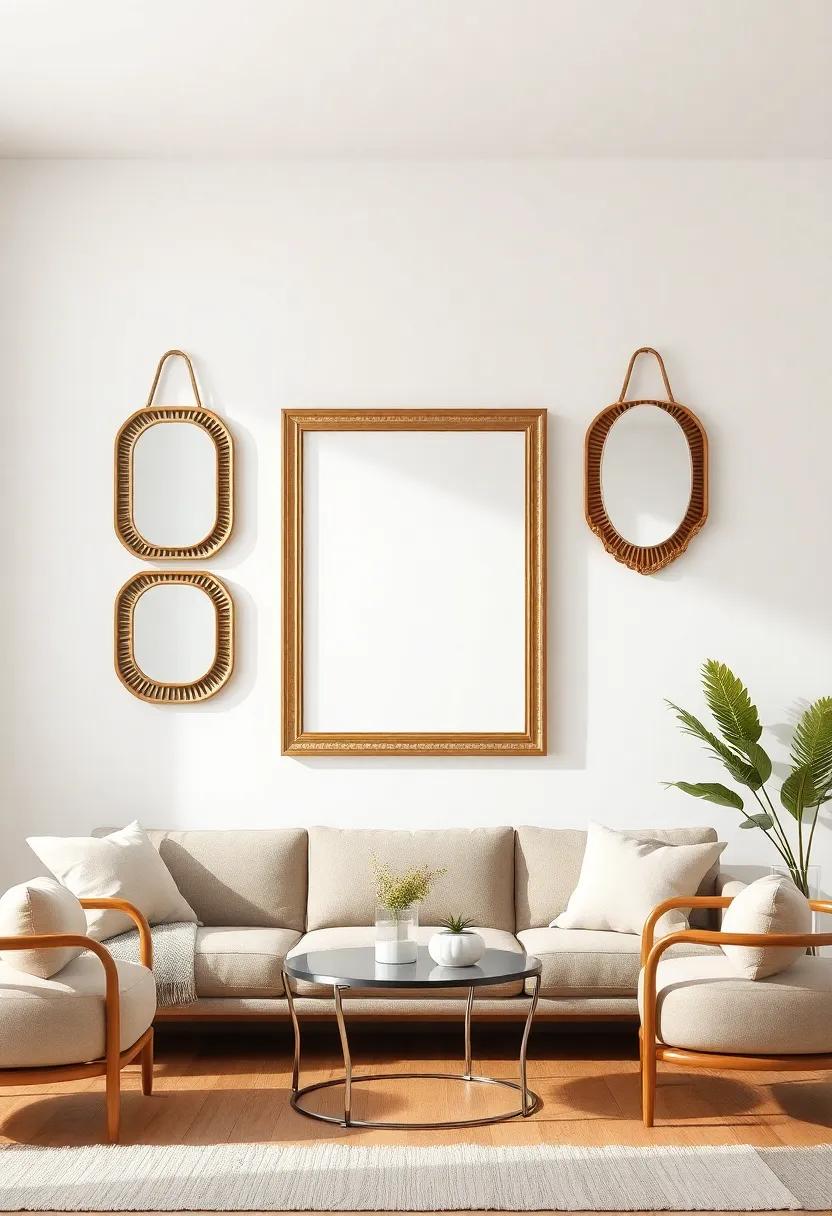 Combining different mirror styles ‌can‍ create a stunning eclectic vibe that breathes new life into your‌ living room. Consider ⁤blending mirrors of varying shapes, sizes,‍ and​ finishes to achieve ⁢a layered look that draws the eye. Opt​ for decorative framed mirrors in contrasting materials like wood‌ or metal ‍alongside minimalist‌ round or rectangular mirrors. This mix creates ⁤depth ⁢and visual ⁣interest ⁤on your walls. Additionally, think about incorporating ⁢mirrors with unique designs, ‌such as sunburst or‌ geometric styles, to add an artistic flair that complements your other décor elements.