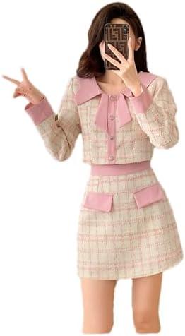 KANG POWER Autumn Winter‌ Tweed Two‍ Piece Set⁢ Women Short Jacket Coat + Skirt Suits Korean 2 Piece Sets Women Outfits