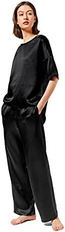 Mommesilk Silk Pajamas for Women Half Sleeve Washable 100% Real Mulberry Silk Pj Sets Sleep Summer