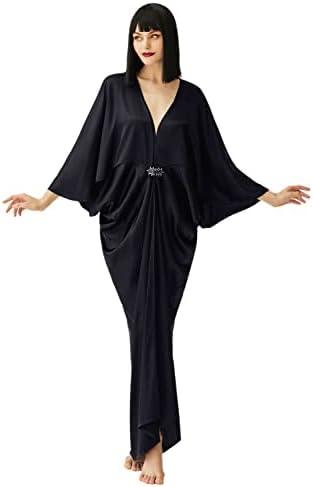 This stunning satin cocoon gown captures the essence of 1920s Hollywood glam, making it an ideal choice for various occasions, from themed parties to cozy evenings at home. Crafted from 100% polyester, it offers a lightweight and comfortable fit, while the flattering cut, pure color design, and metal clasp closure ensure a polished look. The unique batwing sleeves add a dramatic flair that is both eye-catching and sophisticated, making it an exquisite piece for anyone looking to channel the luxurious style of the Art Deco era.