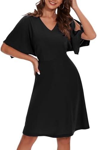 This versatile cocktail dress is designed for a multitude of occasions, making it a great addition to any wardrobe. With its batwing sleeves and flattering V-neck, it provides both style and sophistication. Perfect for spring, summer, and fall, it can be worn to weddings, business meetings, and casual outings alike. The knee-length design strikes a balance between formal and casual, ensuring you look polished without sacrificing comfort. The hidden zipper adds to its sleek appearance, making it easy to slip on and off.