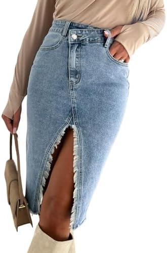 This knee-length skirt is not only chic but also immensely practical for everyday wear. Pair it with a casual top for a laid-back look or dress it up with a stylish blouse and ankle boots for a night out. The skirt’s unique wrap and pencil silhouette perfectly aligns with current fashion trends, ensuring that you stand out effortlessly. With a body-hugging fit that is both comfortable and stylish, this denim skirt is sure to become a staple in your closet.