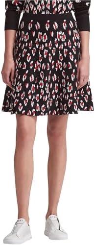 DKNY Womens Leopard A-line Skirt, Black, X-Small