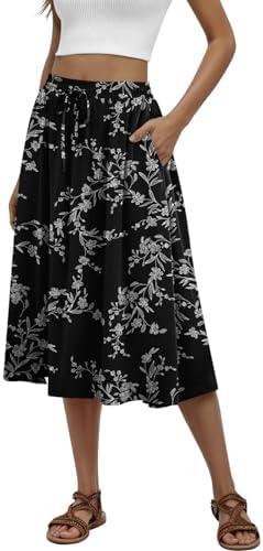 Women’s Midi Skirt Summer Pleated Flowy Elastic High Waisted Skirts with Pockets