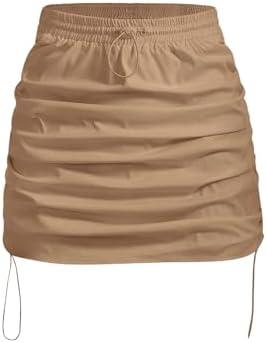Floerns Women’s Casual Drawstring Ruched Elastic Waist Pleated Short Skirts