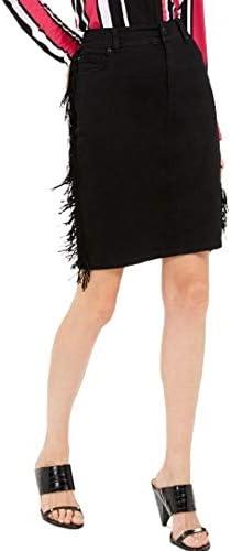 INC International Concepts Women’s Fringe-Trim Denim Skirt Black Size 6