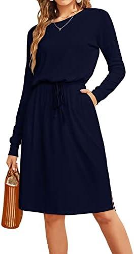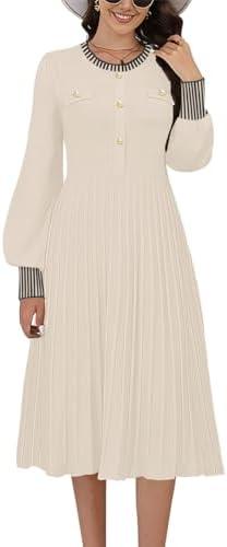 ETCYY Women’s ​Casual Long Sleeve Midi Dress ⁢2025 ‍Striped Fall Sweater Dress‌ Work⁢ Button Pleated A Line Ribbed Knit ⁤Dresses