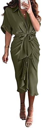 Women Work Casual Knee Length Dress Spring Summer Short Sleeve Travel Hide Belly