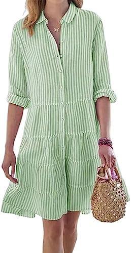 This trendy shirt dress is designed with a casual yet chic flair, featuring a striped pattern that adds a touch of sophistication to your outfit. The cuffed long sleeves and button-down front provide an elegant silhouette, making it a perfect choice for both daytime outings and evening gatherings. Made from premium fabric, it promises incredible comfort while ensuring a flattering fit. The loose cut allows for easy movement, making this dress a go-to option for those seeking both style and comfort in their wardrobe.
