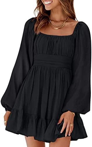This trendy dress is designed to be an all-purpose staple for your wardrobe, perfect for spring, summer, and fall. With its long lantern sleeves and square neckline, it exudes a touch of retro flair while ensuring comfort and breathability. The elastic waist provides a flattering fit, allowing for easy movement without compromising style. Plus, the tie-back feature adds an element of sexiness, making it great for both day and evening occasions. Available in a variety of colors, it’s easy to find the perfect match for any look.