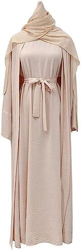 2PCS Women’s Muslim Dresses Abaya Islamic Dubai Prayer Dress Robe Long Cardigan Maxi Dress