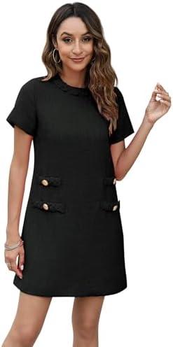 LifeShe Women’s​ Tweed Jackie Dress Elegant‍ Casual A-line Crew ‍Neck Short Sleeve Bodycon Business Mini Dresses