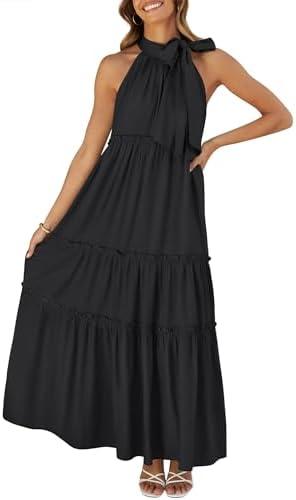 ZESICA Womens Summer⁣ Boho Halter Maxi Dresses⁤ Casual Sleeveless Pleated Tiered Flowy⁣ Beach Vacation Long Dress