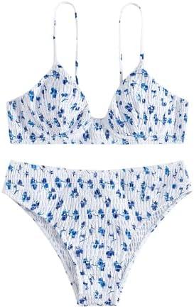 Stylish and Comfortable Floral Print Bikini Set Offering a Smocked Design