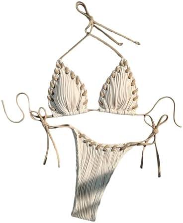 Women’s Color Block Frill Bikini Sets Rope Detailing High Waist Summer Swimsuit Bathing Suit