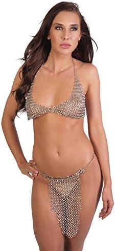 Arsimus Handcrafted Chainmail Halter Top & Bottom Metallic
