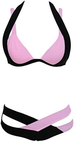 Bestgift Women’s Fashion Push Up Halter Double Color Cross Bikini Set Pink+Black M
