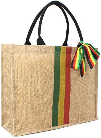 This spacious beach tote is crafted from 100% natural jute, featuring a durable and environmentally friendly design. With a size of 17.7 inches by 13.8 inches and a depth of 4.7 inches, it offers ample space for all your essentials while maintaining a casual vibe. The transparent waterproof coating inside ensures that your belongings stay dry, making it perfect for beach trips or garden parties. Additionally, the natural cotton handle with an 8.7-inch height provides comfort during wear and enhances the bag’s elegant aesthetic, complete with a rich pattern design and ribbon accents that resonate well with reggae culture.