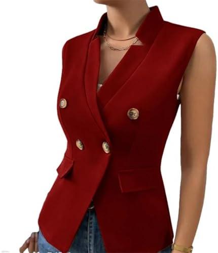 Women’s V Neck Double Breasted Vest Jacket Fashion Casual Vest Jacket