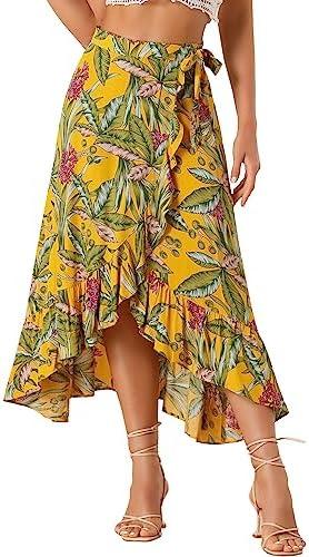 Allegra K Women’s Tropical Floral Print Ruffle Self Tie Knot Split Beach Hawaiian Wrap Skirt