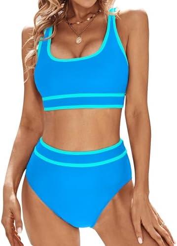 A Stylish High-Waisted Color Block Swimsuit for Women
